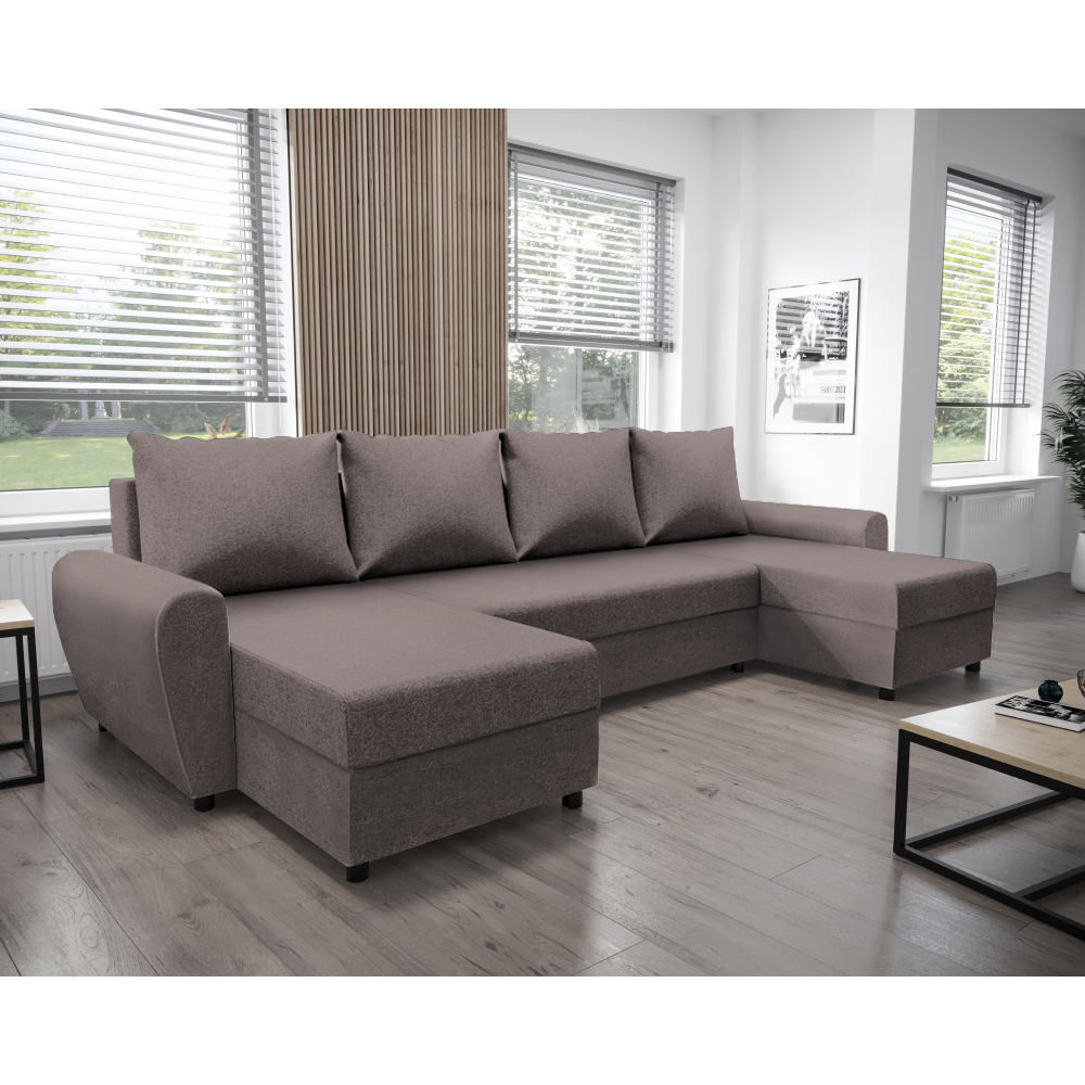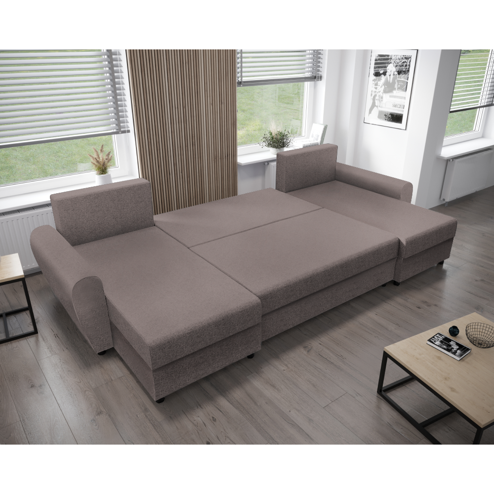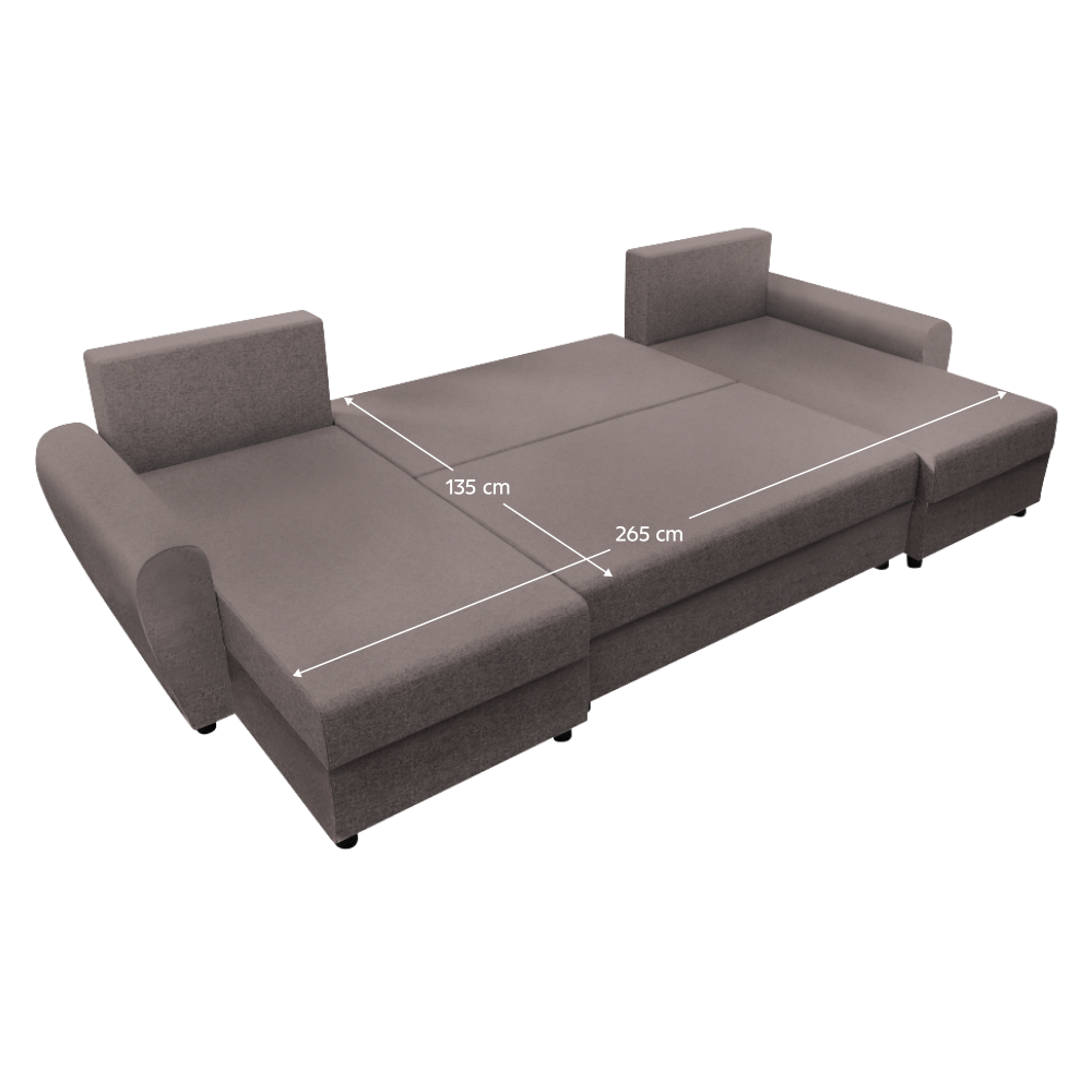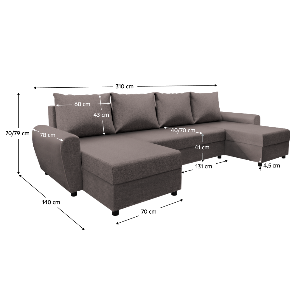 Materiál: látka Twist 03Oderuodolnosť látky podľa testu Martindale: 45 000 oderovFarba: sivobéžová TaupeRozmery (ŠxHxV): 310x140/140x70/79 cmPlocha na spanie (ŠxD): 135x265 cmVýška sedu: 41 cmHĺbka sedu: 40/70 cmHĺbka otomanu bez vankúšov: 131 cmNa plastových nožičkáchFarba nožičiek: čiernaVýška spodného priestoru od podlahy: 4,5 cmVýplň: pur pena T28RozkladaciaUniverzálnaTvar US úložným priestoromDodávaná s vankúšmiRozmer vankúšov (ŠxH): 68x43 cmDodávané v demonte