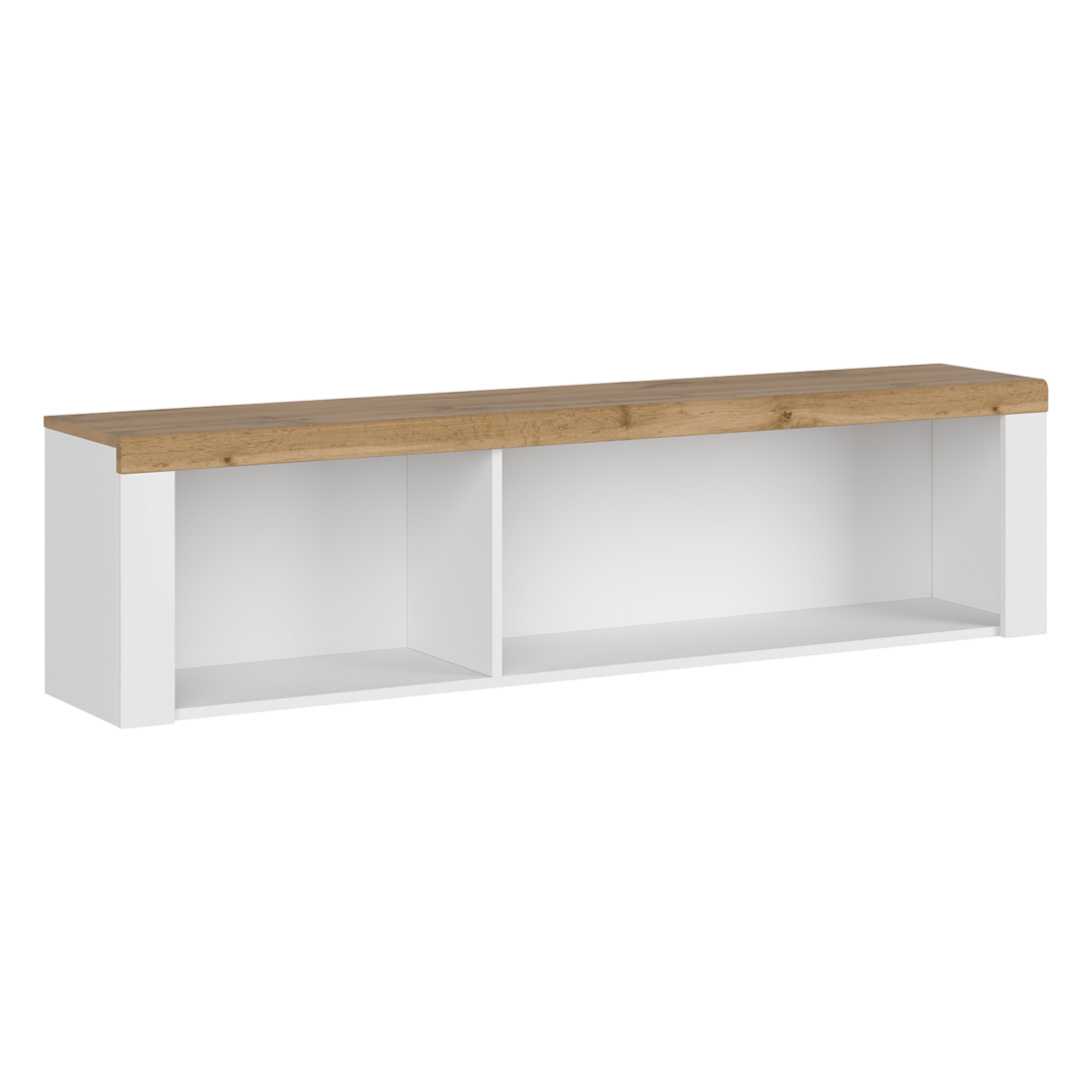 Materiál: DTD laminovaná/ABS hranyFarba: biela/dub wotanRozmery (ŠxHxV): 156x30,5x40 cmVýška odkladacej časti: 36,8 cmHrúbka materiálu: 1,6 - 2,2 cmSo stredovou priečkou Spodná a vrchná lištaOtvorený úložný priestor2 odkladacie častiDodávaný v demonte