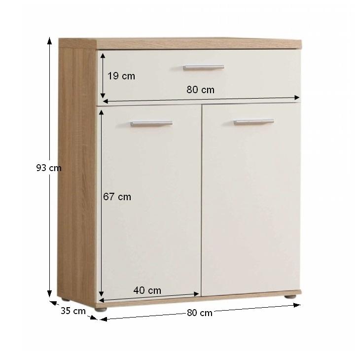 Komoda, WINIE WNK431, Materiál: DTD fóliovaná, Farebné prevedenie: dub sonoma/biela, Rozmery: (ŠxHxV) 80x35x93 cm