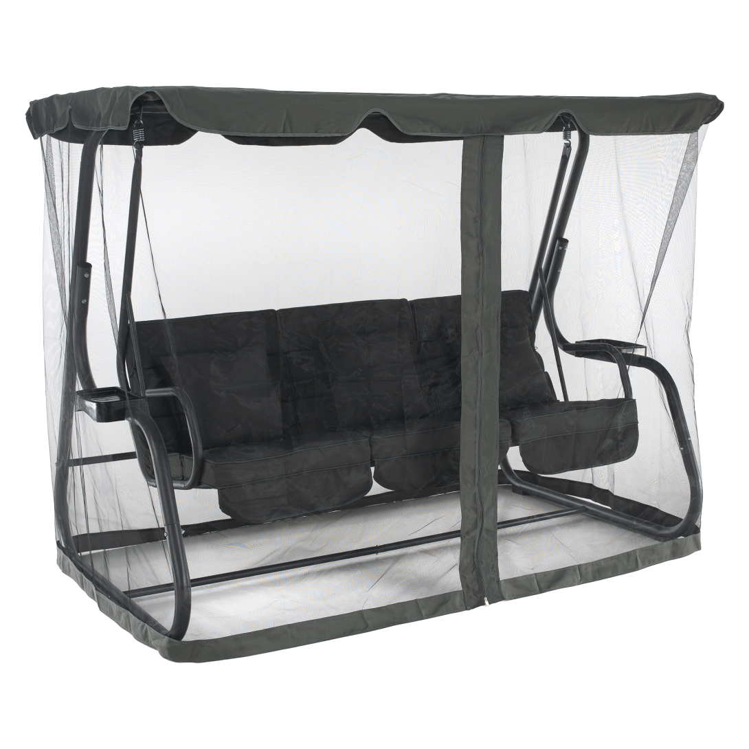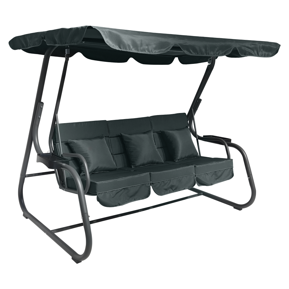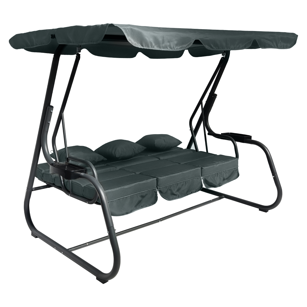 Materiál: kov/polyesterová tkanina/plastFarba: tmavosiváRozmery (ŠxHxV): 221,1x130x170,3 cmVýška sedu: 47 cmHĺbka sedu: 57,5 cmŠírka sedu: 173 cmVýška chrbta: 54 cmKovová konštrukciaOdkladacie priestory na oboch stranáchMožnosť rozloženia na ležanieRozmery ležania: 108x173 cmNosnosť: 200 kg3x dekoratívne vankúšeRozmery vankúšov (ŠxV): 38,3x39 cmVodoodolné poťahyPrať ručnePoťah upevnený suchým zipsomDodávané so sieťkouZapínanie na zipsProtišmykové nožičkyDodávané so strieškouRozmery striešky (ŠxV): 221,1x130 cmBez možnosti nastavenia sklonuDodávané v demonte