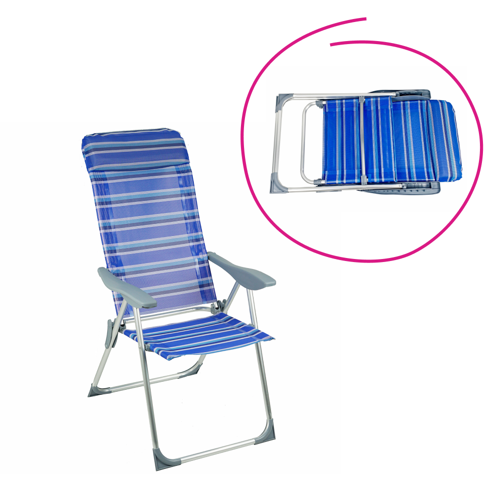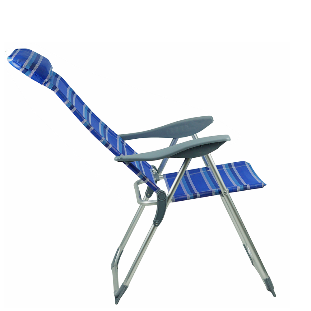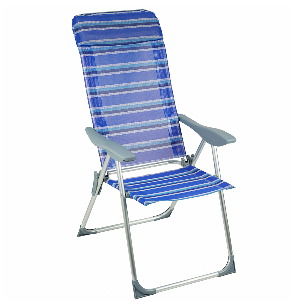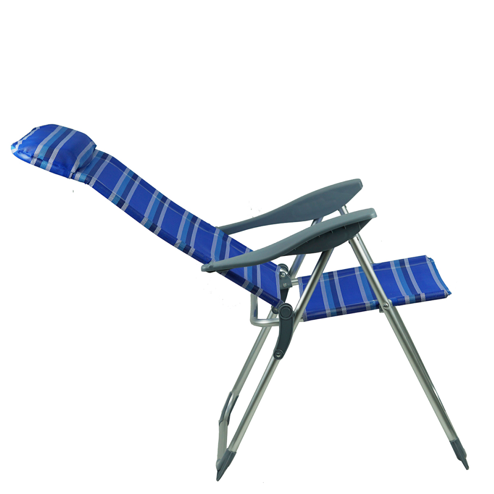 Materiál: hliník/plast/polyesterFarba: modrá/siváRozmery (ŠxHxV): 58x69/103x82/109 cmRozmery zložené kreslo (ŠxHxV): 99x58x8 cmVýška sedu: 42 cmHĺbka sedu: 36 cmŠírka sedu: 45 cmŠírka opierky chrbta: 44 cmVýška opierky chrbta: 77 cmVýška opierky na ruku: 61 cmNosnosť: 90 kgHmotnosť: 3,75 kgPolohovacie5 polôhPlastové područkyPlastové krytky na spodnej konštrukciiVhodné na záhradu, terasu, k bazénuJednoduchá manipulácia a presunDodávané v monte