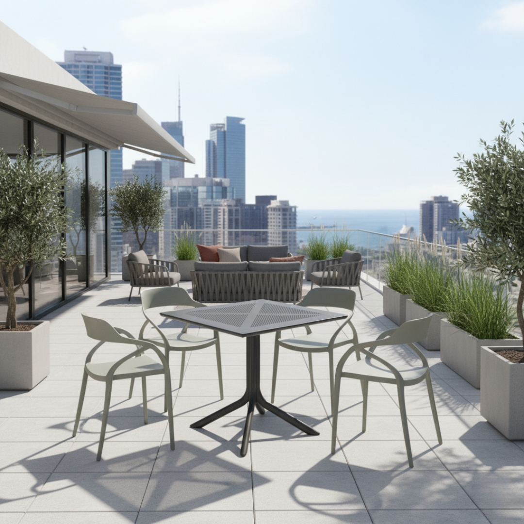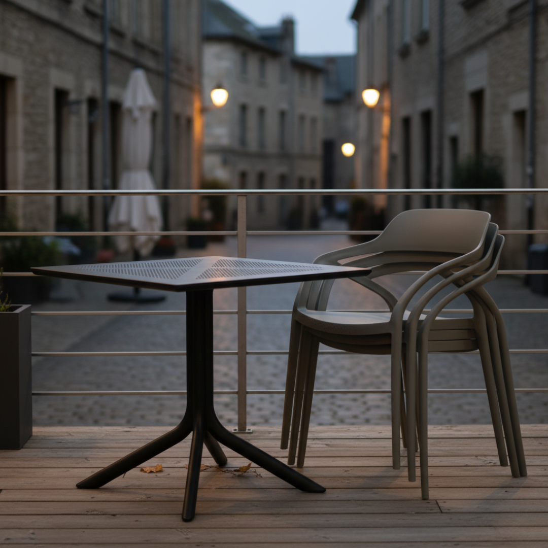Materiál: plastFarba: čiernaRozmery (ŠxHxV): 79,5x79,5x74,5 cmNosnosť: 50 kgHmotnosť: 10,5 kgJednoduchýPraktickýNa nožičkáchJedálenský/záhradný stôlVhodný do interiéru aj exteriéruStolovanie pre 4 ľudíDodávané v demonte