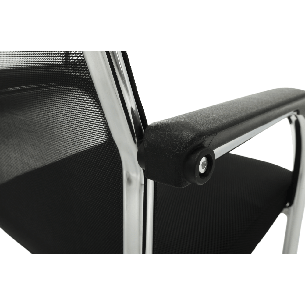 Materiál: sieťovina/kovOderuodolnosť textílie podľa testu Martindale: 90 000 oderovFarba: čierna/striebornáRozmery (ŠxHxV): 55x64x93 cmVýška sedu: 45 cmHĺbka sedu: 48 cmŠírka sedu: 48 cmŠírka chrbtovej opierky: 44,5 cmVýška chrbtovej opierky: 53 cmVýška od zeme po vrch opierky na ruky: 64cmNosnosť: 100 kgPlastové opierky na rukyPevná konštrukciaDo zasadačiek a rokovacích miestnostíDodávané v demonte