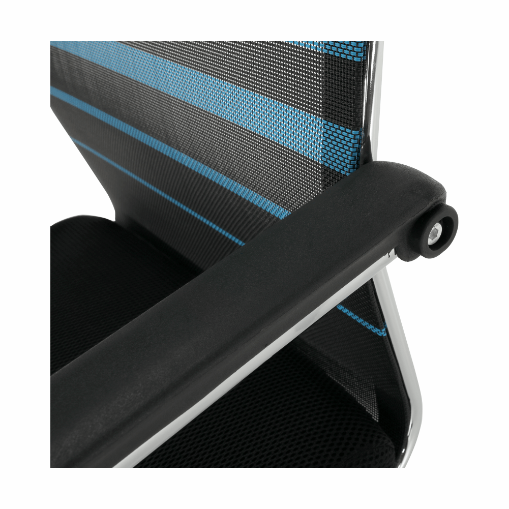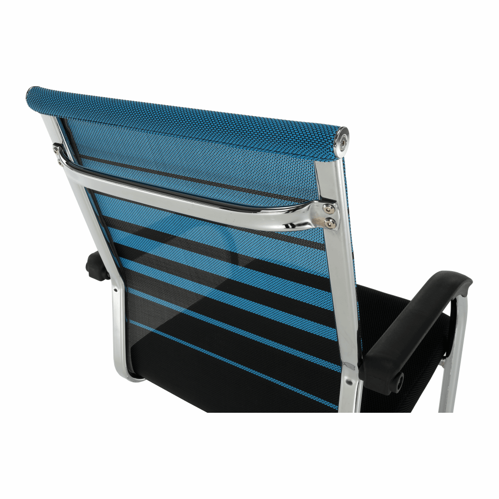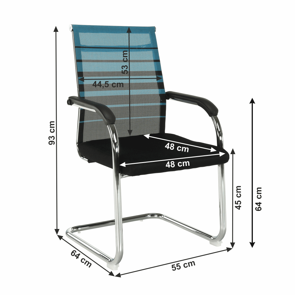 Materiál: sieťovina/kovOderuodolnosť textílie podľa testu Martindale: 90 000 oderovFarba: modrá/čierna/striebornáRozmery (ŠxHxV): 55x64x93 cmVýška sedu: 45 cmHĺbka sedu: 48 cmŠírka sedu: 48 cmŠírka chrbtovej opierky: 44,5 cmVýška chrbtovej opierky: 53 cmVýška od zeme po vrch opierky na ruky: 64cmNosnosť: 100 kgPlastové opierky na rukyPevná konštrukciaDo zasadačiek a rokovacích miestnostíDodávané v demonte