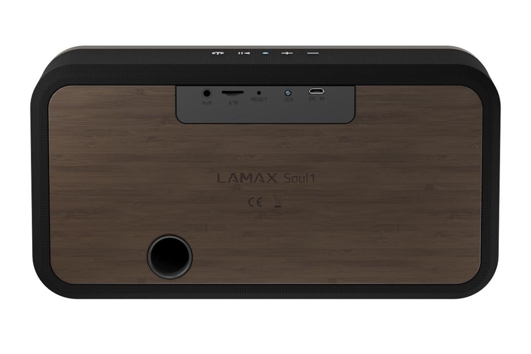 Predná strana s dreveným dekórom dáva reproduktoru retro nádych a imidž väčších soundsystémov. Boky obopína tkanina, vďaka ktorej telo skvele padne do ruky. Na vrchu sú biele ovládacie tlačidlá, ktoré kontrastujú s čiernym povrchom. Nezáleží na tom, kam LAMAX Soul1 postavíš, zaslúženú pozornosť si získa všade.