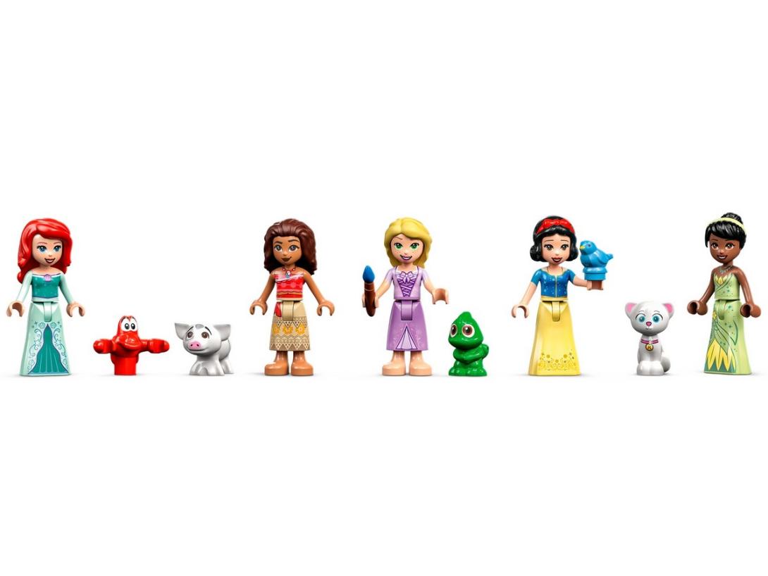 S touto stavebnicou sa deti budú celé hodiny zabávať v spoločnosti Ariely, Moany, Rapunzel, Snehulienky a Tiany od Disneyho a nechýbajú ani figúrky zvierat LEGO: Marcel, Pascal, Pua, Sebastian a vtáčik. Je pôsobivým darčekom pre každého fanúšika princezien z rozprávok Disney.