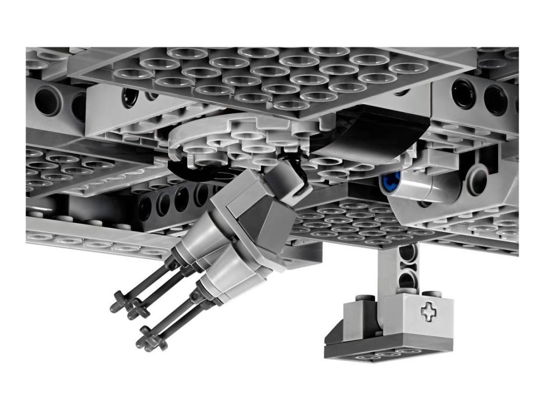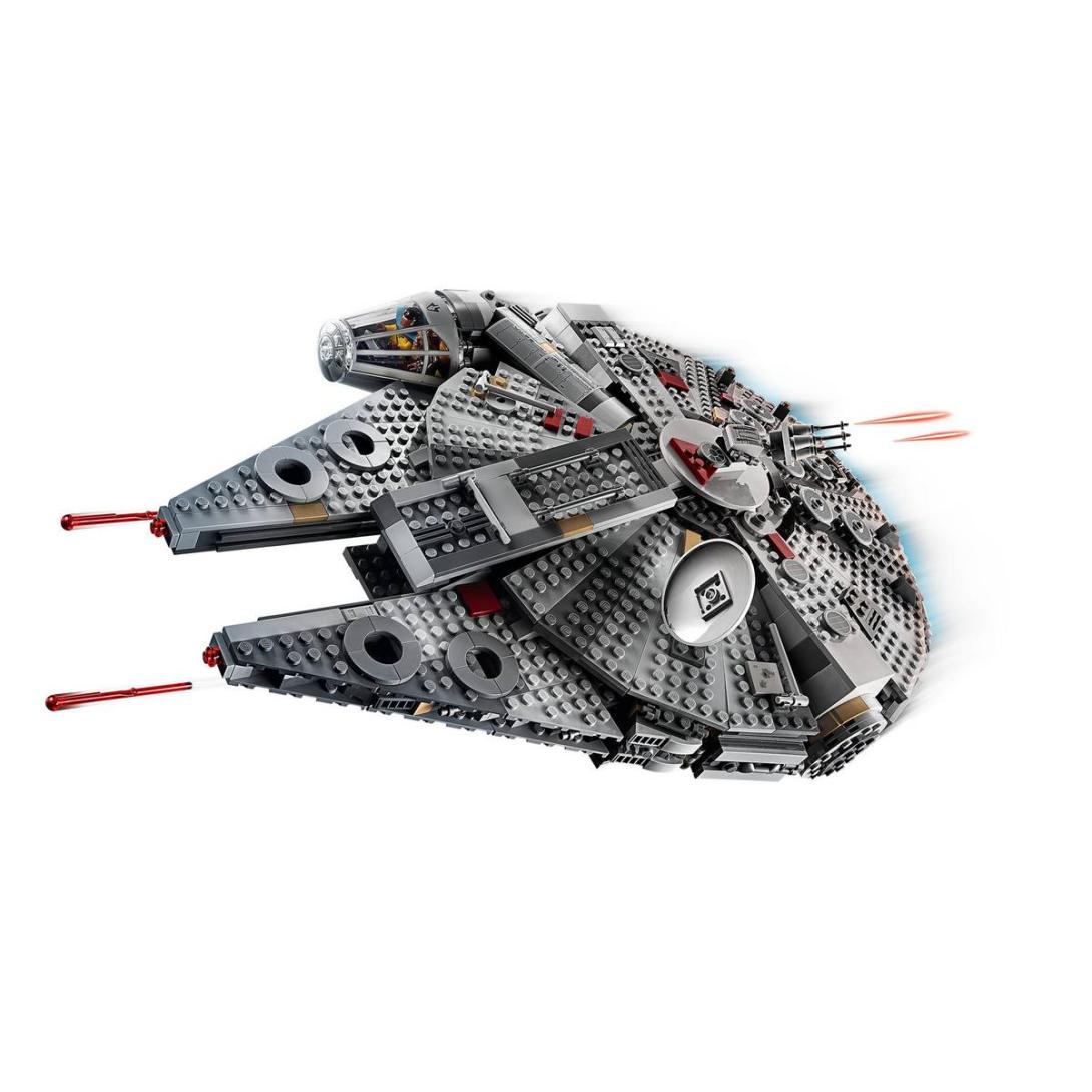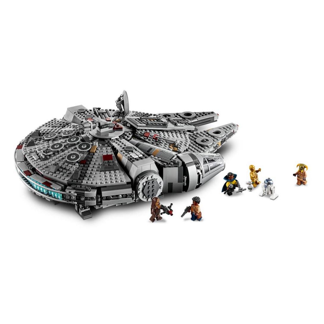 - LEGO® Star Wars™ model lode Millennium Falcon obsahuje externé prvky ako otočné strelecké veže vo vrchnej aj spodnej časti (do spodnej veže sa zmestia 2 minifigúrky), 2 pružinové vystreľovače, spúšťaciu rampu a otvárateľný kokpit s priestorom pre 2 minifigúrky.