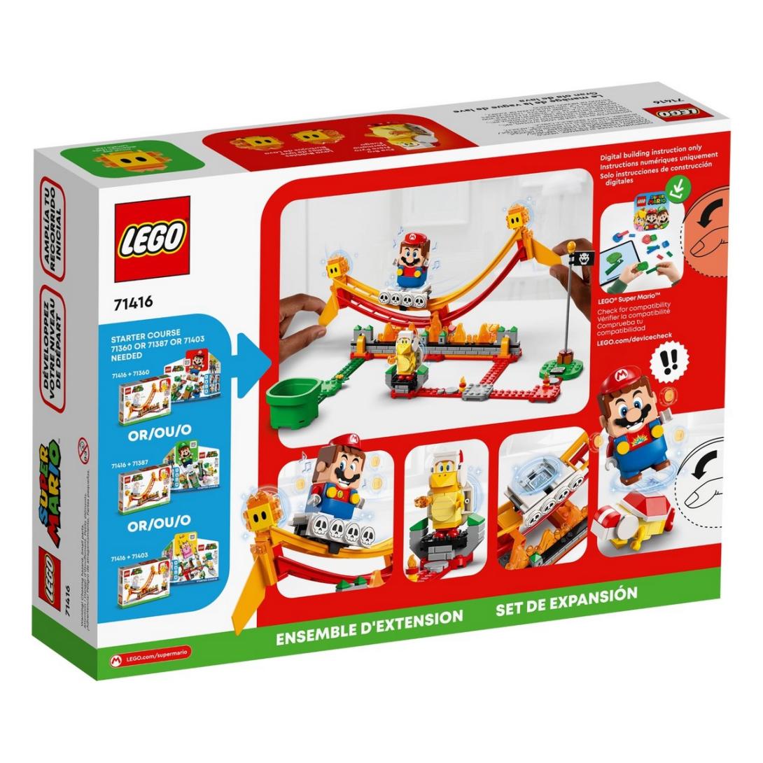 Deti si môžu vytvoriť žeravý level vo svete LEGO® Super Mario™ vďaka rozširujúcemu setu Jazda na vlne lávy (71416). Obsahuje hojdajúcu sa vlnu lávy s plošinou pre LEGO® Maria, LEGO® Luigiho alebo LEGO® Peach (figúrky nie sú súčasťou balenia). Za zotrvanie a jazde na vlne, ako aj za porazenie 2 Lava Bubbles na vrcholkoch vlny, získajú hráči digitálne mince. Set je ideálnou voľbou pre skupinové hry a obsahuje aj nepriateľského Ohnivého Broa.