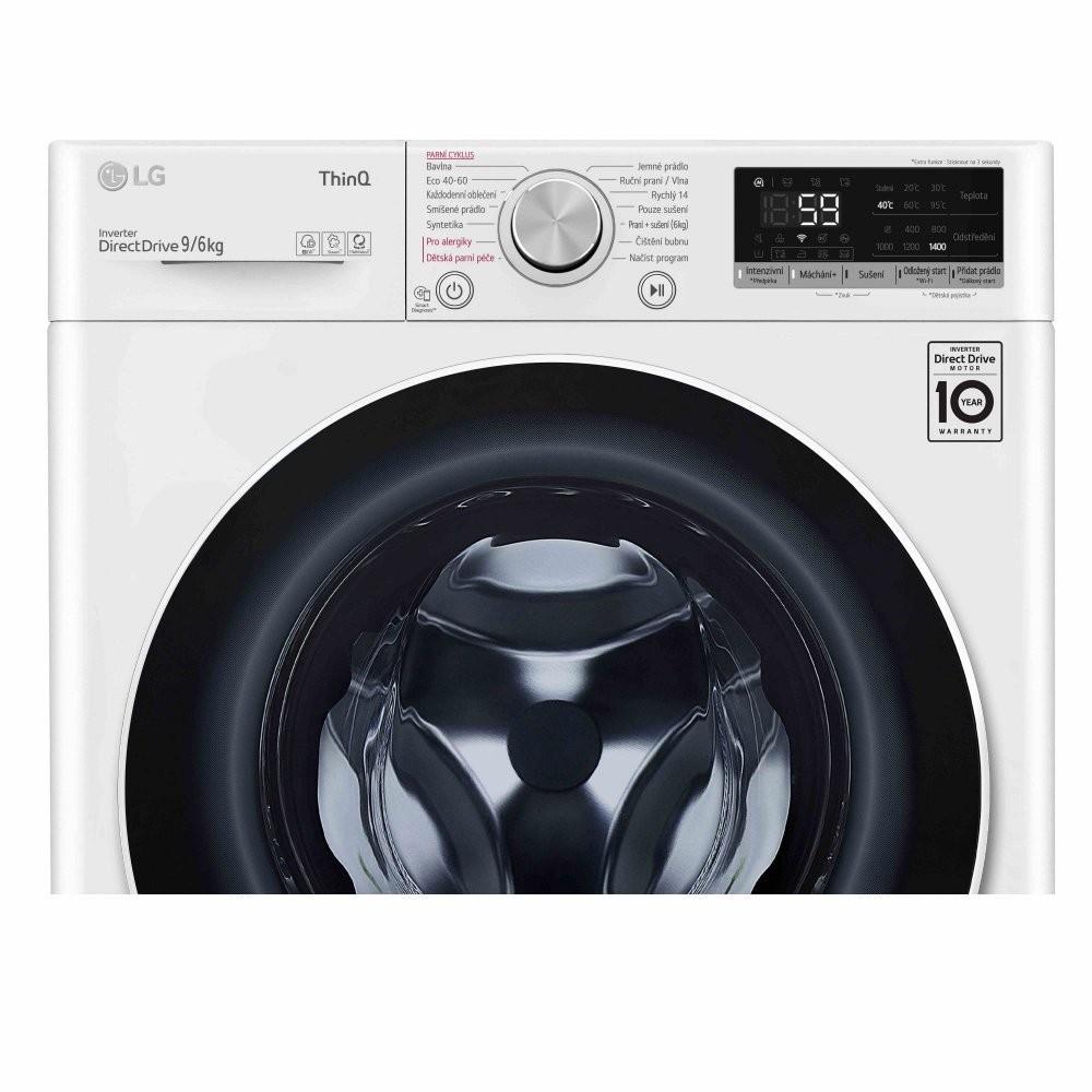 - Spredu plnená automatická práčka so sušičkou v bielom designe s čiernymi prvkami