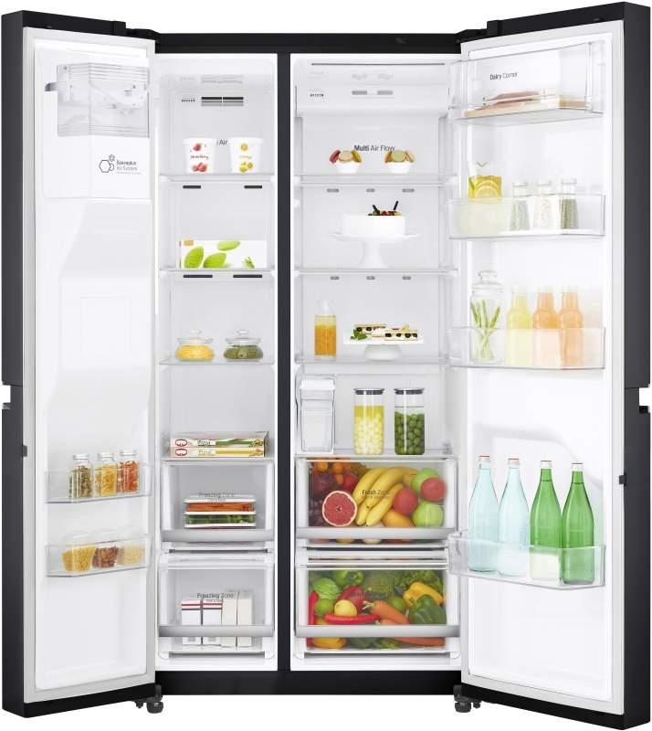 Inteligentná americká chlanička LG GSL761MCZZ je vynikajúcou možnosťou pre praktické uskladnenie vašich potravín. Vďaka jej veľkému úžitkovému objemu až 668 litrov do nej môžete uložiť veľké nákupy a dostatok jedla. Disponuje mnohými vynikajúcimi vlastnosťami a systémami, ktoré sa starajú o správne podmienky pri uskladňovaní vašich potravín. Americká chladnička má k dispozícii aj nápojový automat s výrobníkom ľadu s funkciou dvriča vo dverách. Chladiaca časť v úžitkovom objeme 411 litrov ponúka 4 sklenené police, LED osvetlenie, 2 zásuvky pre ovocie a zeleninu (1x Moist Balance Crisper ) a dverové poličky. Mraziaca časť v objeme 214 l ponúka skladovací priestor so 4 sklenenými policami a 2 priehľadnými plastovými zásuvkami. Mraziaca kapacita dosahuje 12 kg/24 hod. a akumulačná doba v prípade výpadku prúdu 10 hodín. Chladnička disponuje úžasnými vlastnosťami, napríklad Total No Frost, Multi-Air Flow ™, Pure N fresh, Expresné mrazenie a chladenie, detský zámok ako aj alarm otvorených dverí.