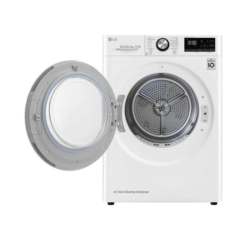 - Hybridná sušička s tepelným čerpadlom v bielom dizajne s čiernými prvnami