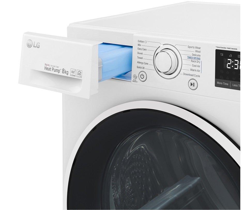Duálne invertorové tepelné čerpadlo predstavuje najpokrokovejšiu technológiu sušenia. Zvyšuje rozsah frekvencie obehu chladiva bez nutnosti vypnutia. Tým zamedzuje stratám energie a zvyšuje efektivitu sušenia. Sušičky LG sa môžu hrdiť energetickou triedou A+++.