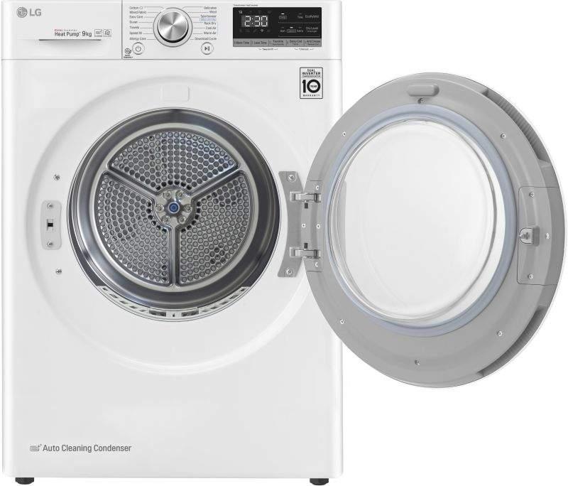 - 14 programov: Bavlna, Zmiešaná bielizeň, Syntetika, Prikrývky, Uteráky, Pre alergikov, Rýchly 30, Športové oblečenie, Vlna, Jemná bielizeň, Sušenie na sušiaku, Studený vzduch, Teplý vzduch; + Načítať program (cez Wi-Fi) Ďalšie programy na stiahnutie cez Wi-Fi (smartphone, aplikácia LG Smart ThinQ)