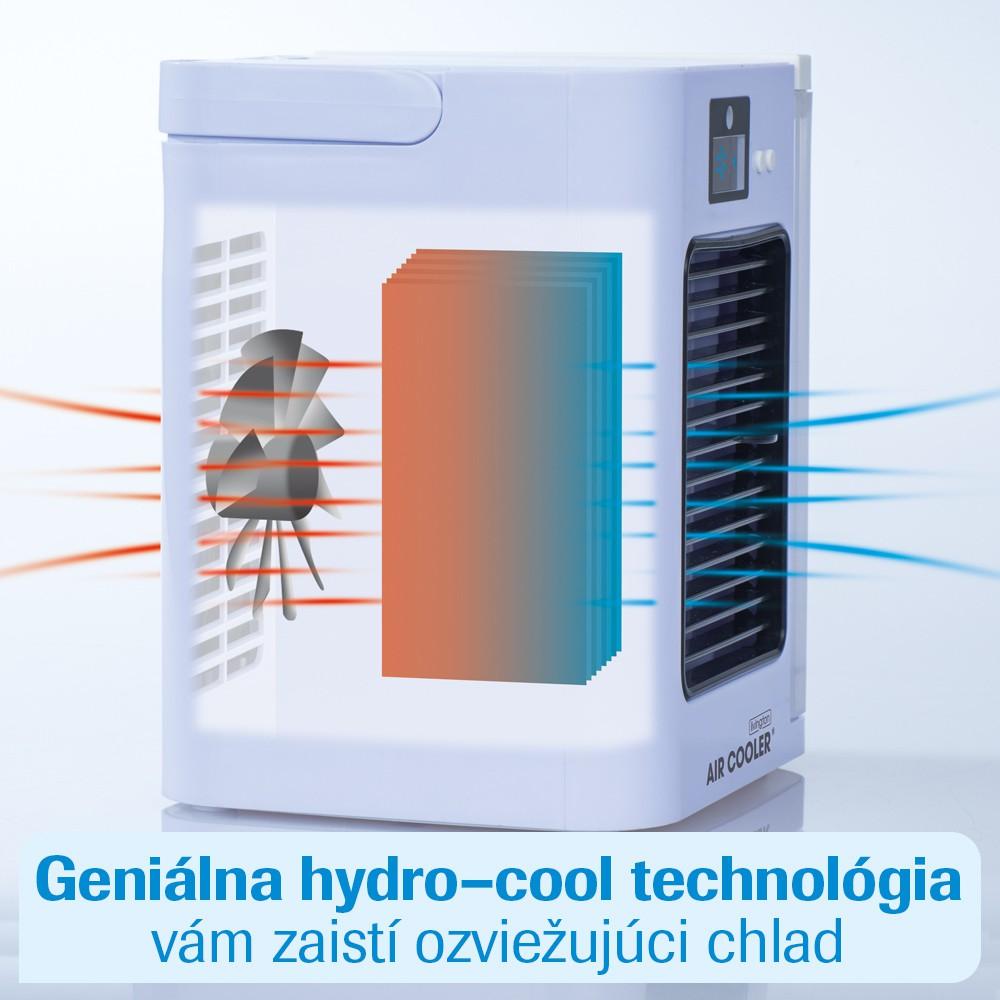 Malý ochladzovač vzduchu, ochladzuje, čistí a zvlhčuje vzduch úplne bez chemikálií, geniálna hydro-cool technológia sa postará o osviežujúci chlad