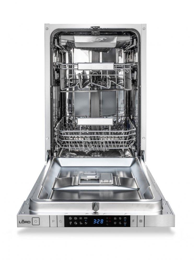 Vstavaná umývačka riadu LORD D2 o šírke 45 cm sa radí do energetickej triedy C. Umývačka dokáže pojať celkom 10 obedových súprav. Jej vnútorný priestor je usporiadaný tak, aby sa každý kus riadu zo sady dokonale umyl a usušil. Riad sa dá rozdeliť do celkom 3 úrovní. Navyše vo vnútri nájdete aj príborovú zásuvku, ktorá zaistí perfektne umyté príbory a zároveň viac miesta pre ďalší, objemnejší riad. Môžete vyberať z 8 základných programov. Hodiť sa bude potrebné rýchle umývanie na 45 °C, či naopak intenzívne umývanie na 65 °C. Nechýba ani ekonomický program, ktorý váš riad umyje pri 50 °C. Zvoliť môžete tiež funkciu na predumytie riadu. Pokiaľ nemáte žiadne zvláštne požiadavky, stačí jednoducho zvoliť automatický program. Ten vďaka špeciálnym senzorom dokáže posúdiť mieru zašpinenia riadu. Podľa toho zvolí ideálnu teplotu v rozmedzí 55 až 65 °C. Zároveň spotrebuje len také množstvo vody, aké je potrebné na perfektné umytie. Po skončení umývacieho cyklu sa umývačka dokáže sama automaticky otvoriť.