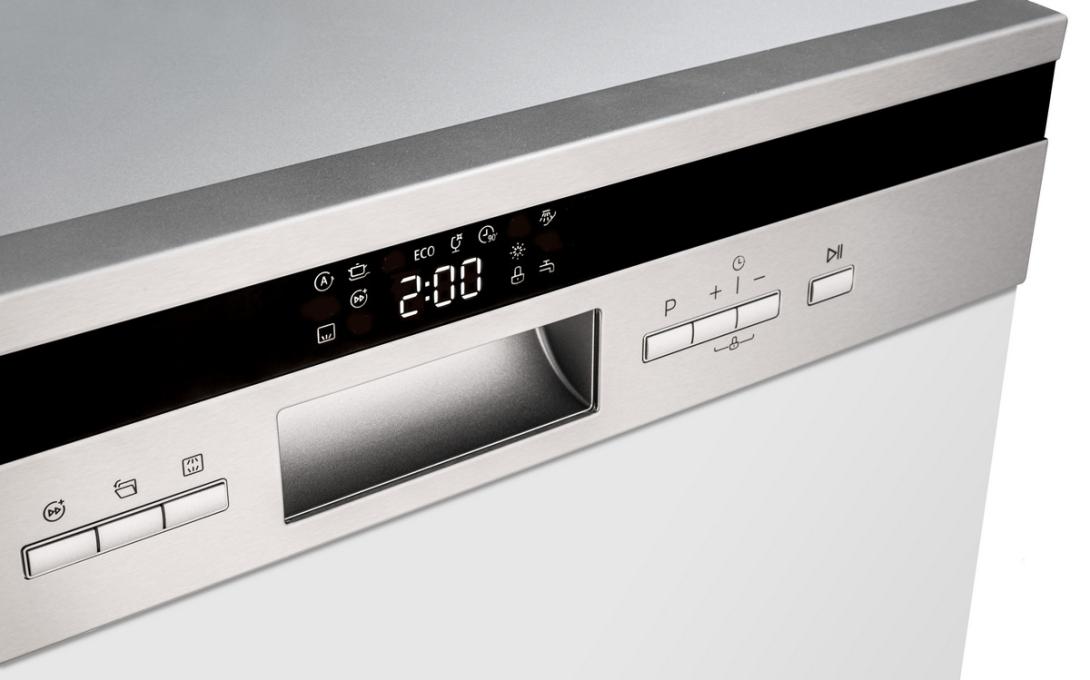 LED displej vám umožní neustále kontrolovať zvolenej programy a uľahčuje všetky nastavenia. Informuje o čase, ktorý zostáva do konca umývania, a upozorní na to, že je potrebné doplniť soľ alebo leštidlo.