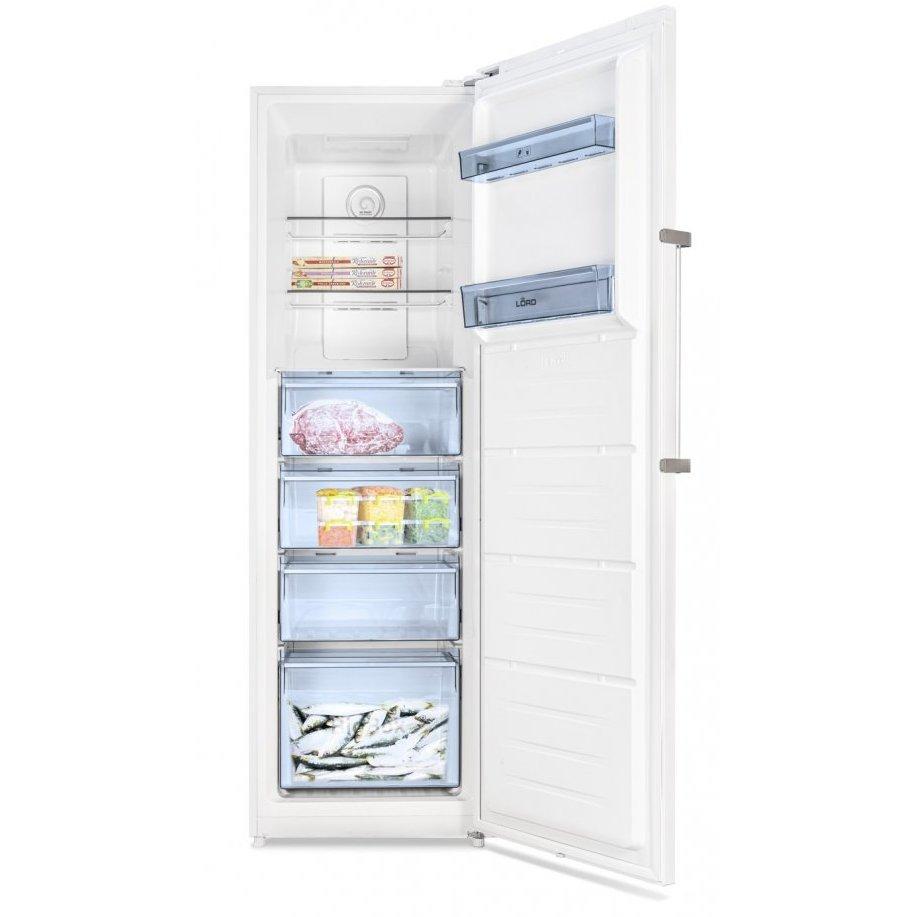 LORD F2 šuplíková mraznička, ktorý vďaka objemu 274 l ponúka skutočne veľký priestor pre skladovanie potravín a to aj vďaka BigBox. Mraziaci priestor disponuje nastaviteľnou teplotou v rozmedzí od -16 ° C do -26 ° C, ktorá sa zobrazuje pomocou LED displeja. Mraznička je vybavený funkciou SuperFrost rýchle zmrazenie, ktorú je vhodné využívať k urýchleniu procesu zmrazovania čerstvých potravín. Zaiste oceníte tiež NoFrost systém, vďaka ktorému nebudete musieť mrazničku manuálne odmrazovať, pretože systém zabezpečí optimálnu teplotu a vlhkosť v celom priestore. Veľmi praktickou funkciou je tiež alarm dverí v podobe výstražného akustického signálu, ktorý sa zapne v prípade, keď sú dvere spotrebiča otvorené a ďalej i vizuálne a zvukový teplotný alarm LORD F2 je vysoko výkonným šuplíkovým mrazničkou, s ktorého pomocou budete môcť uchovávať potraviny po dlhú dobu. Spotrebič pracuje veľmi efektívne a spadá tak do energetickej triedy E. Pri výpadku elektrického prúdu udrží potraviny zmrazené až 24 hodín.