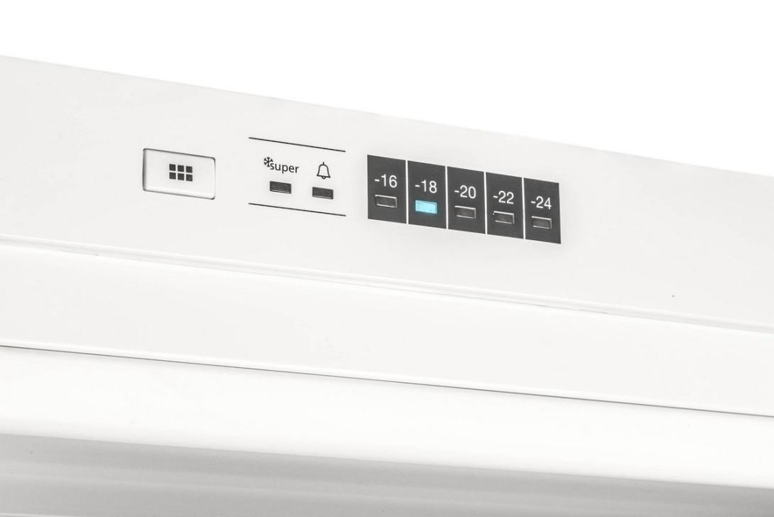 Mraziaci priestor disponuje nastaviteľnou teplotou, ktorá sa zobrazuje pomocou LED ukazovateľa. V mrazničke nájdete 4 zásuvky a 2 výklopy pre rýchlejší prístup k potravinám.
