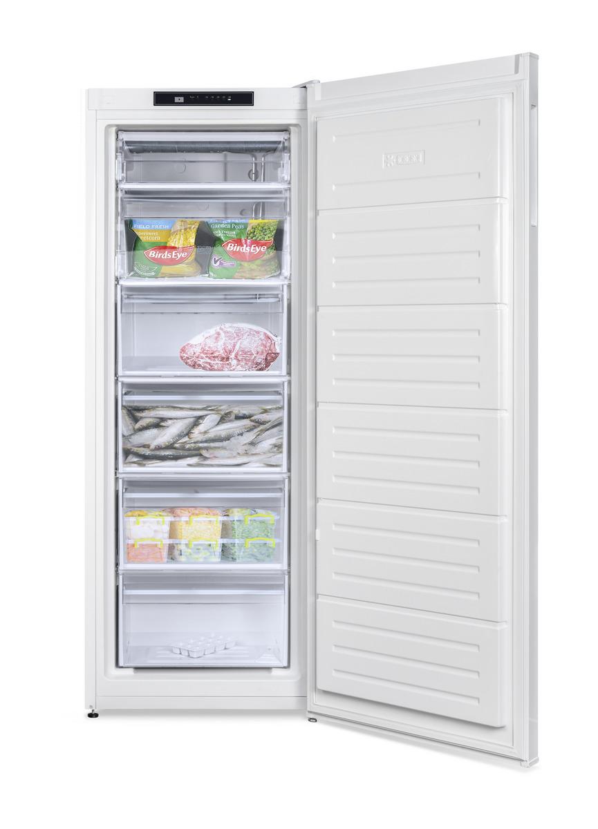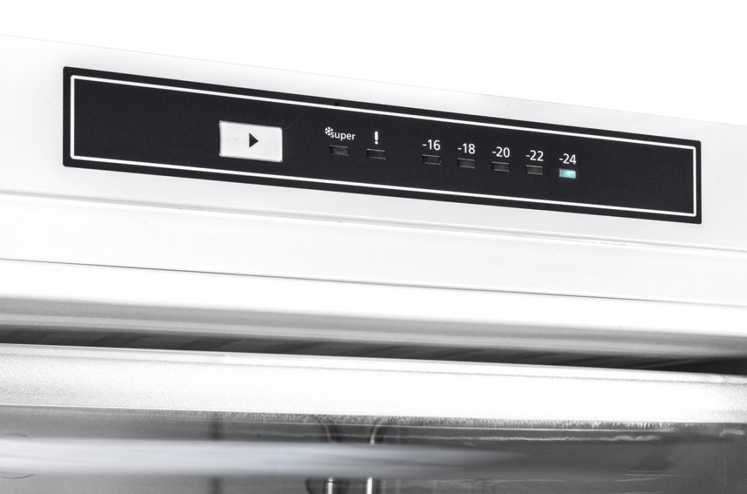 Mraziaci priestor disponuje nastaviteľnou teplotou, ktorá sa zobrazuje pomocou LED ukazovateľa. V mrazničke nájdete 4 zásuvky a 2 výklopy pre rýchlejší prístup k potravinám.
