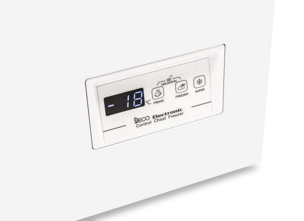 Truhlicová mraznička s teplotným rozsahom -15 ° C do -24 ° C Ročná spotreba energie: 215 kWh Energetická trieda: E Úžitkový objem celkom: 246 l Hlučnosť: C 40 dB Klimatická trieda: SN-T ( 10 ° C do 43 ° C) Počet kompresorov: 1 Invertor BLDC kompresor Množstvo na zmrazenie za 24 hod: 14 kg Doba skladovania pri výpadku prúdu: 24 h Koše štandardne: 1 Vhodné pre okolitú teplotu do - 15 ° C (FrostProtect)