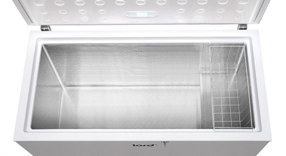 LORD G5 truhlicová mraznička sa začleňuje do voľne stojacich mrazničiek, takže ho možno umiestniť takmer kamkoľvek a to aj tam, kde je až -15 ° C ako je garáž, pivnica, balkón, chata alebo chalupa, kde netemperujete. Kolieska uľahčí presun podľa potreby. Prekvapí vás nielen svojím úžitkovým priestorom a jednoduchým ovládaním, ale hlavne svojou nízkou spotrebou. Radí sa do energetickej triedy E pri ročnej spotrebe 254 kWh. Hlučnosť mrazničky 40 dB. V mrazničke tiež nájdete Invertor BLDC kompresor Pri otvorení ponúkne tento mrazák dostatočný úžitkový objem 371 l, Takže nemusíte mať strach z nedostatku priestoru. Nespornou výhodou je možnosť uskladnenie objemných potravín, diviny. Iste oceníte aj závesný kôš, do ktorého môžete uložiť aj zmrzlinu a ovocie. Aj po stránke výkonu nezaostáva a prekvapí, pretože dokáže zmraziť až 18 kg potravín za 24 hodín a pri výpadku prúdu zostanú potraviny zmrazené ešte po dobu 36 hodín. Mraznička je vybavená funkciou super mrazenie (SuperFrost) pre rýchle zmrazenie. Keď sa na stenách mraziaceho priestoru po dlhšej dobe prevádzky vytvorí vrstva námrazy alebo ľadu ani toho sa báť nemusíte, ľahké odmrazenie a odvod roztopenej vody vpredu Vám to uľahčí. Veko mrazničky je vybavené nielen LED svetlom, ale aj rúčkou na pohodlné otváranie a zatváranie, kde je súčasťou aj zámok.