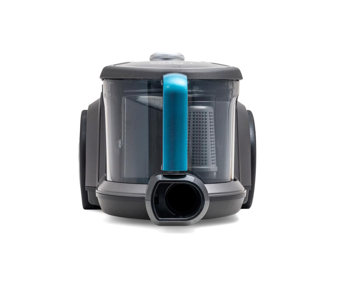 Klasické prachové sáčky nahradí priehľadná nádoba na prach s objemom 3l, ktorú tiež veľmi jednoducho vyprázdnite. Vysávač disponuje držadlom zaručujúcim jeho komfortné používanie.