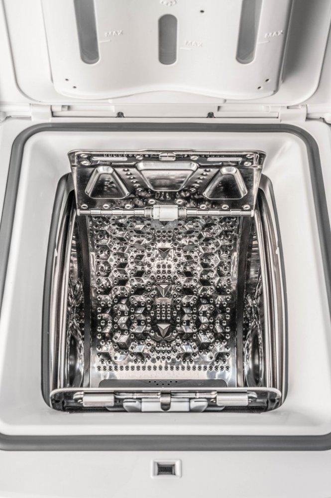 Vrchom plnená práčka, počet programov: 16, maximálne otáčky pri odstreďovaní: 1 300 / minúta, Spotreba: 47 kWh / 100 cyklov, Hlučnosť: B 78 dB