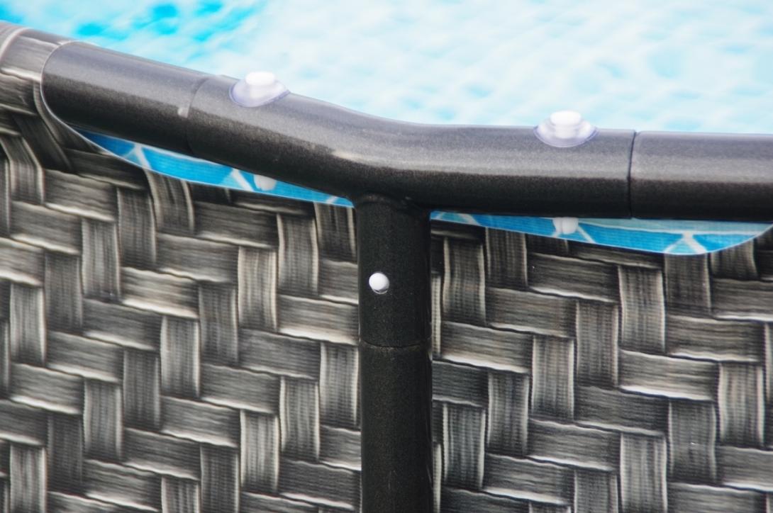 Steny sú vyrobené z pružného a pevného 3 vrstvového Polystrenght PVC materiálu. Vonkajšia stena bazéna je prevedená v imitácií ratan.
