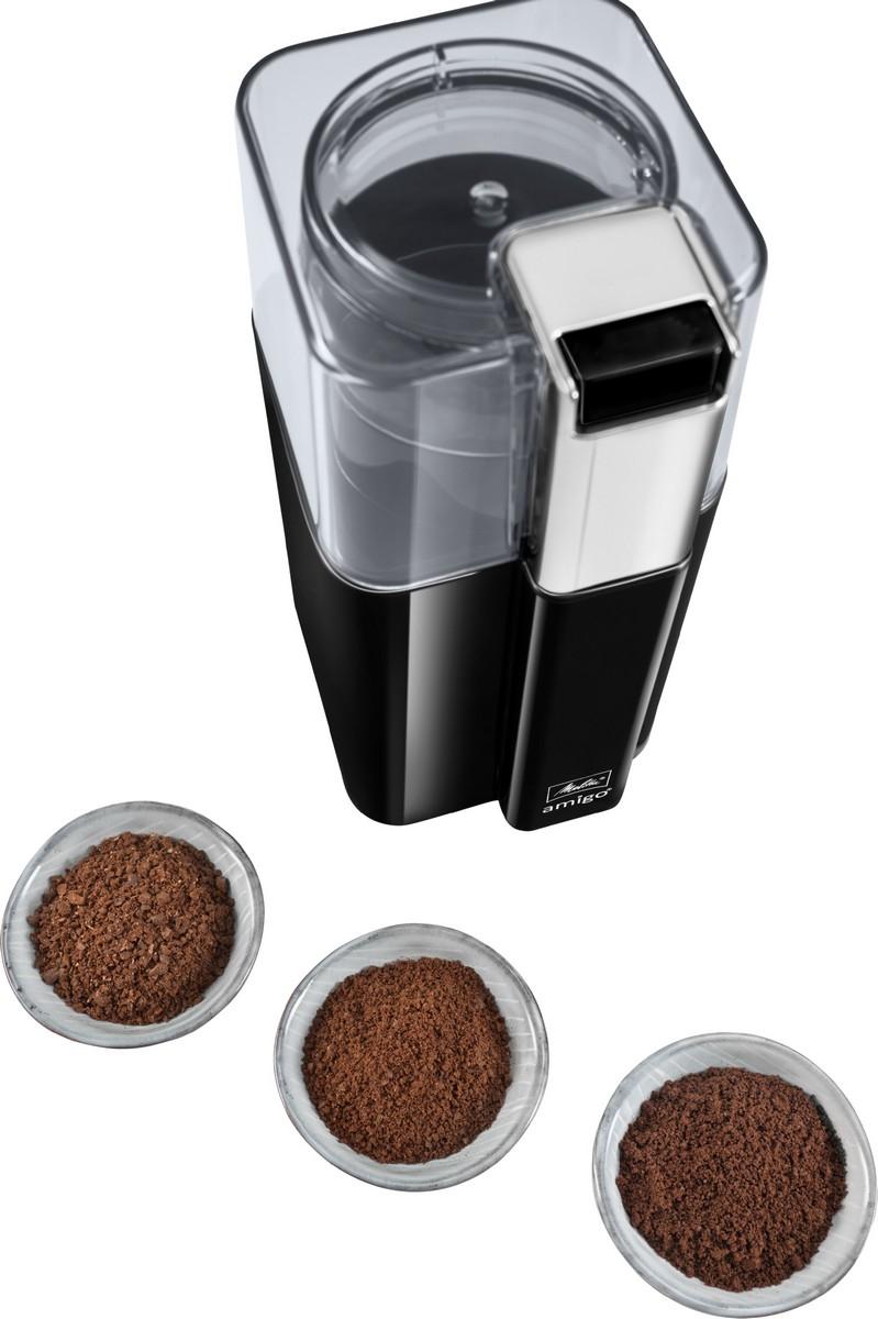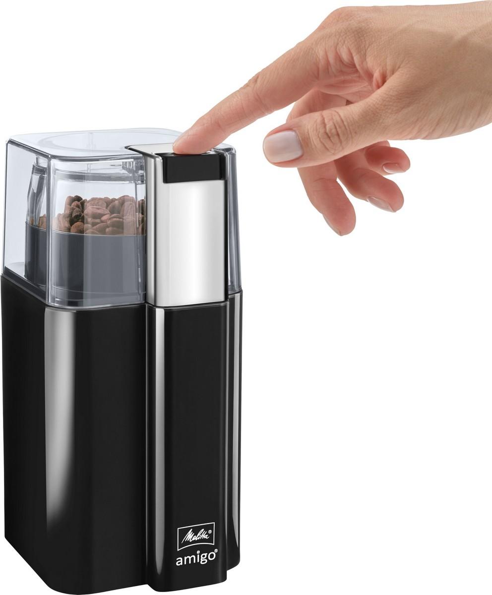 Mlynček na kávu, Náš elektrický mlynček na kávu Melitta® amigo® s kapacitou 60 g, dvoma vysoko kvalitnými čepeľami z nerezovej ocele a jednoduchým ovládaním zaručí svieži pôžitok v každej šálke.
