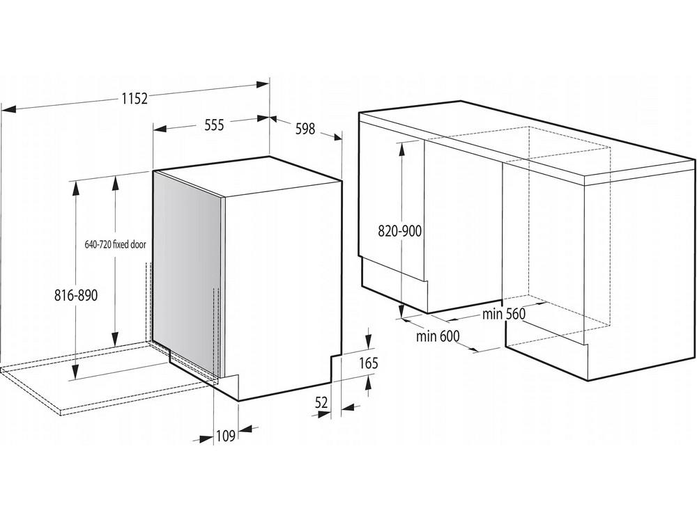 Umývačka riadu, kapacita umývačky 16 súprav riadu, spotreba energie: 85 kWh/100 cyklov, úroveň emisií hluku: 44 dB(A) re 1 pW