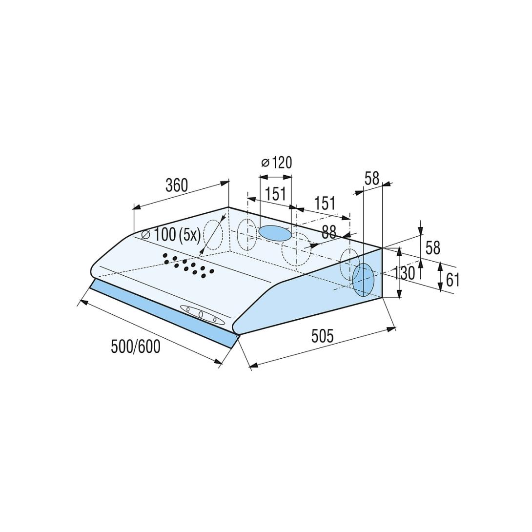 Podskrinkový digestor, Šírka 600 mm, Hĺbka 505 mm, Hmotnosť 5,5 kg, Menovitý príkon 85 W