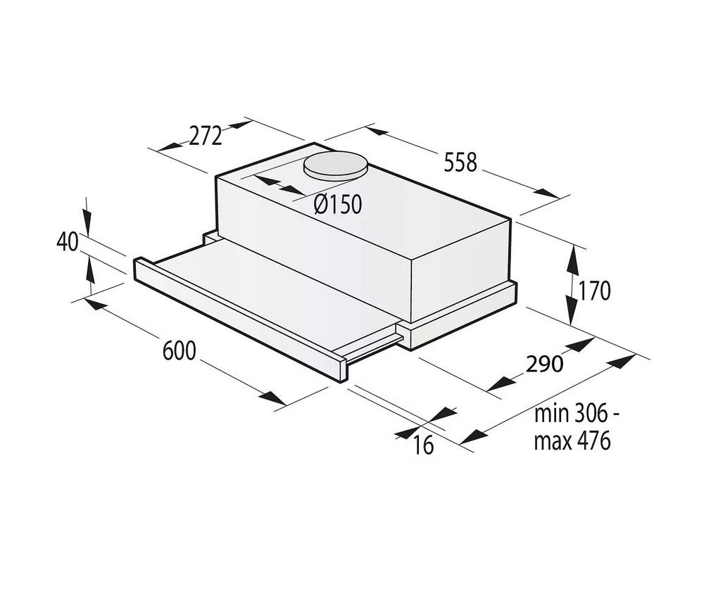 Digestor, Maximálny výkon odsávania 350 m3/h, Ročná spotreba el. energie 48,4 kwh/rok, Celkový výkon osvetlenia 2 W