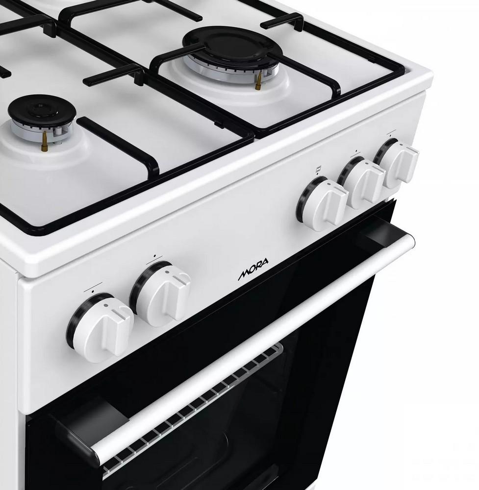 Sporák, Objem rúry 70 l, Materiál varnej mriežky Smaltovaná oceľ, Plynová rúra s poistkou STOP GAS Áno, Nastaviteľné nožičky Áno