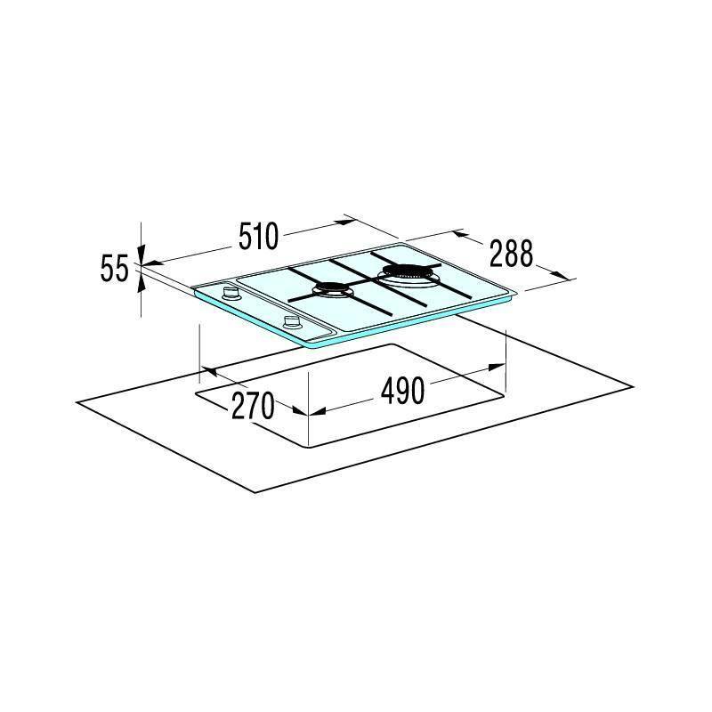 Plynový varný panel, Počet varných zón: 2, Počet varných mriežok: 1, Pripojenie na plyn: G 1/2“, Farba: Nerez, Zapaľovanie horákov: Integrované, Poistky k horákom STOP GAS