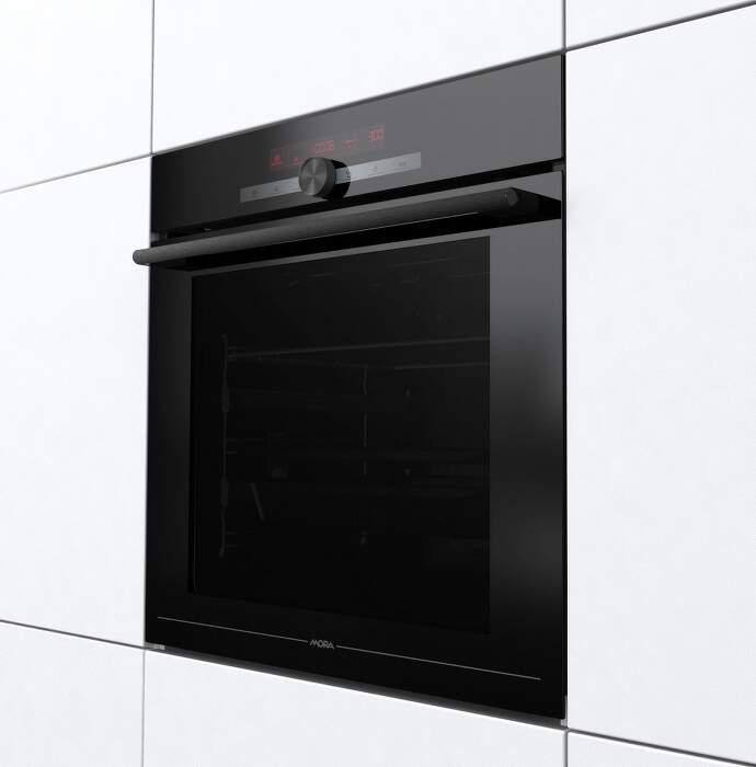 Táto elektrická rúra v elegantnom prevedení z čierneho skla vám okrem tradičného pečenia otvorí dvere k ďalším moderným tepelným úpravám pokrmu. Disponuje funkciou pary, ktorú ocenia predovšetkým priaznivci zdravej výživy. Pripravíte s ňou jedlá rýchlo a šetrne, takže si zachovajú maximum vitamínov a stopových prvkov. Navyše vás prekvapí výborná chuť a prirodzená konzistencia výsledných jedál. Ďalej je rúra vybavená 22 automatickými programami pečenia, ktoré sú navrhnuté presne podľa potrieb konkrétnych jedál. Vyberte iba typ jedla a jeho hmotnosť, rúra zvolí správnu teplotu, vyhrievacie telesá a nastaví čas prípravy. Vykúzlite napríklad výbornú pizzu ako z talianskej reštaurácie (program Pizza 300 °C), pomaly upečiete pečienku a efektívne rozmrazíte hotové porcie jedla. Pokiaľ si radi pochutnávate na hranolkách alebo kuracích nugetách, ale nedoprajete si ich tak často kvôli vysokej kalorickej hodnote, môžete tiež skúsiť program pre teplovzdušné fritovanie bez tuku. Klenutý vnútorný priestor rúry je inšpirovaný tradičným tvarom kamennej pece. Chytro rozmiestnené vyhrievacie telesá a extra veľký objem 77 l zaručujú dokonale prepečené a chrumkavé jedlo zo všetkých strán. Túto vlastnosť oceníte najmä pri príprave hydiny alebo domáceho chleba. Zaujme vás určite aj variabilným rozpätím teploty od 30 do 300 °C. Teleskopický výsuv zabezpečí ľahšiu manipuláciu s plechom, zatiaľ čo tlmené zatváranie a otváranie dvierok prinesie komfort pri každodennej prevádzke. Vďaka dvojitému osvetleniu získate perfektný prehľad bez toho, aby ste museli rúru otvárať. Špeciálne dvierka CoolDoor sú vyrobené z trojitého skla, takže zostávajú chladné, a teda bezpečné, aj počas pečenia. Perfektné vyčistenie rúry je riešené nielen parnou funkciou ECO CLEAN na odstránenie väčších nečistôt, ale aj priebežným katalytickým čistením, ktoré sa samo spúšťa, akonáhle rúra dosiahne teplotu 85 °C a viac.