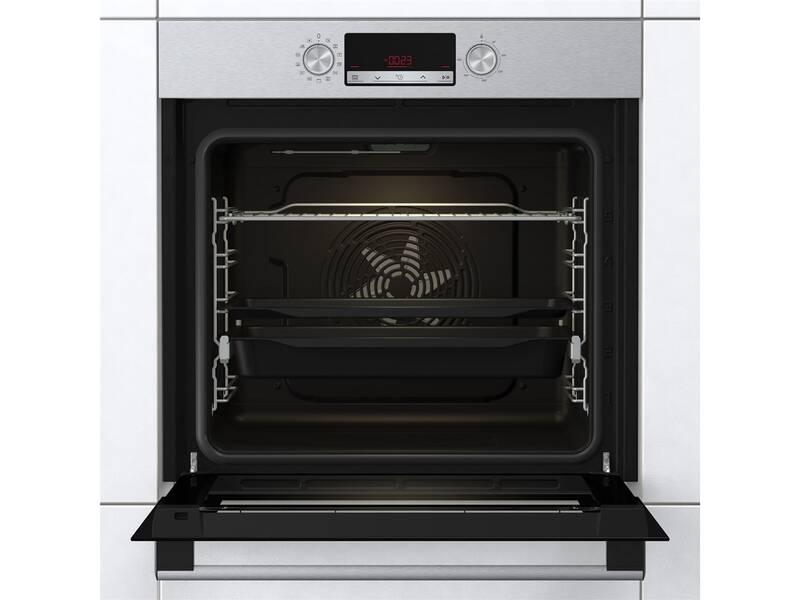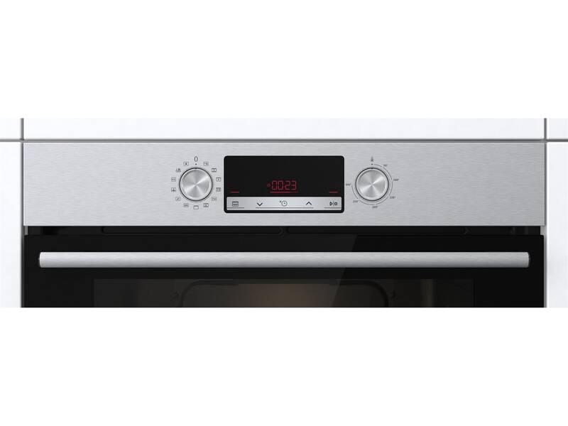 Elektrická rúra samostatná s funkciou pary, HomeMade tvar rúry, objem rúry 77 l, zasúvacie gombíky pre nastavenie teploty a spôsobu ohrevu, dotykové programovateľné hodiny, programovanie doby pečenia/odloženie štartu s automatickým vypnutím, kuchynská minútka, multifunkčná rúra 12 funkcií, možnosť regulácie teploty 50-300 °C, program Pizza 300 °C, program pre pomalé pečenie, program pre mrazené a hotové jedlá, program pre teplovzdušné fritovanie bez tuku, funkcia pečenie v krokoch, funkcia gratinovanie, EXTRA PARA 2 programy pečenia v pare, rýchle predhriatie rúry, výsuvné teleskopické rošty (1 úroveň), tlmené zatváranie & tlmené otváranie dvierok, ECO CLEAN funkcia ekologického čistenia rúry parou, nerez s úpravou proti odtlačkom prstov, osvetlenie rúry, personalizácia nastavení (denný čas, hlasitosť zvukového signálu, displej), pamäť posledného nastavenia času pečenia, energetická trieda A, menovitý príkon: 3,5 kW, elektrické napätie: 230 V, príslušenstvo: 1x pekáč, 1x rošt, nerez