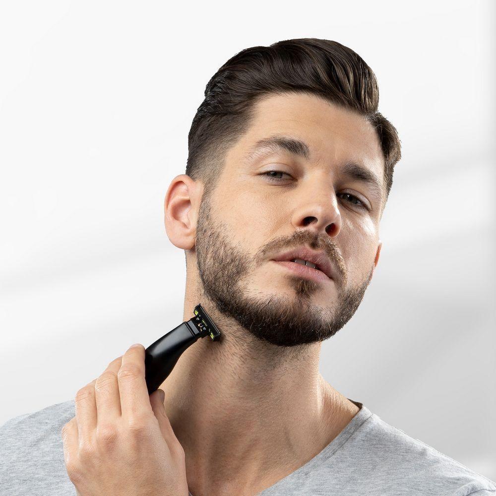 Niceboy ION AirBlade je revolučný holiaci strojček a zastrihávač, ktorý spája výkon, všestrannosť a pohodlie pre dokonalú starostlivosť o bradu a telo. Vďaka rýchlo sa pohybujúcej čepeli a špeciálne upraveným nožom je ideálny na zastrihávanie, tvarovanie a holenie fúzov všetkých dĺžok. Jeho zaoblené hrany a ochrana proti porezaniu zaisťujú bezpečnosť pri používaní na citlivých miestach. Vďaka nástavcom s dĺžkou 1 mm, 3 mm a 5 mm si navyše môžete ľahko prispôsobiť vzhľad podľa svojich predstáv. Vďaka vodotesnému telu ho možno používať na suché aj mokré holenie, dokonca aj v sprche. Vďaka 90-minútovej výdrži batérie na jedno nabitie a rýchlemu nabíjaniu sa nemusíte obávať prerušenia počas starostlivosti o telo.