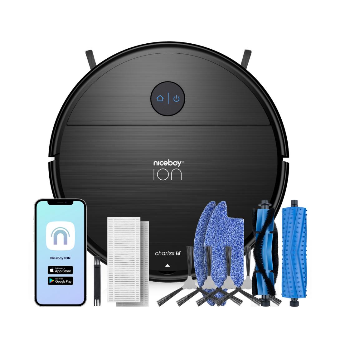 Niceboy ION Charles i6 je inovatívny robotický vysávač, ktorý sa postará o komplexné čistenie všetkých podláh v domácnosti. Podlahy nielen dôkladne vysaje, ale vďaka funkcii mopovania ich aj hneď vytrie. Tento vysávač využíva gyroskopický navigačný systém na efektívne plánovanie trasy a jeho inteligentné senzory zabraňujú kolíziám a pádom. Navyše je vybavený pokročilým filtračným systémom s technológiou MAX Clean, ktorá účinne odstraňuje všetky nečistoty a alergény. Navyše môžete celé upratovanie pohodlne kontrolovať z mobilného telefónu vďaka prepojeniu vysávača s aplikáciou Niceboy ION.