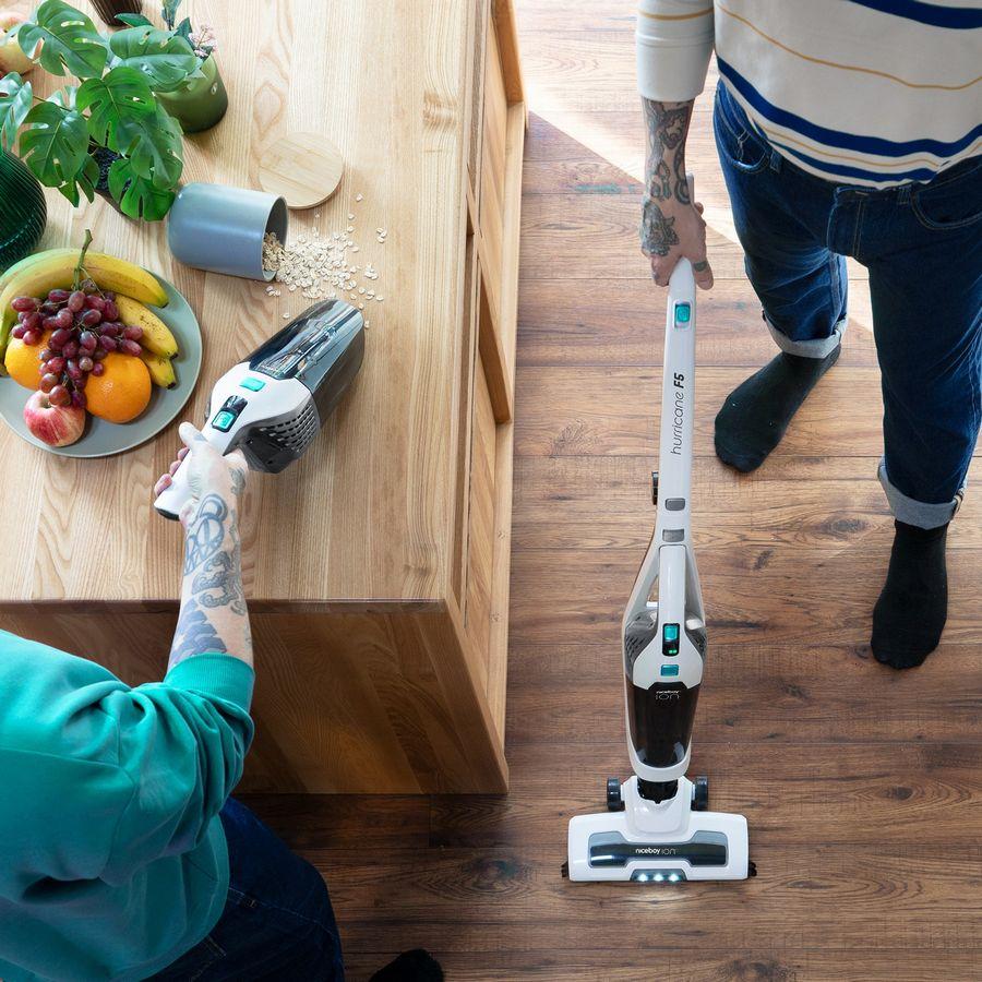 Multifunkčný vysávač Niceboy ION Hurricane F5 prináša praktický prístup k upratovaniu vďaka prevedeniu 2v1. Teda kombináciu tyčového a ručného vysávača, ktorý vám v jednom tele poskytuje všetky výhody špecializovaných vysávačov. Ako tyčový vysávač exceluje pri efektívnom čistení väčších plôch, zatiaľ čo ručný vysávač rýchlo vybaví upratovanie ťažko prístupných miest, vrátane nábytku a interiéru automobilu.