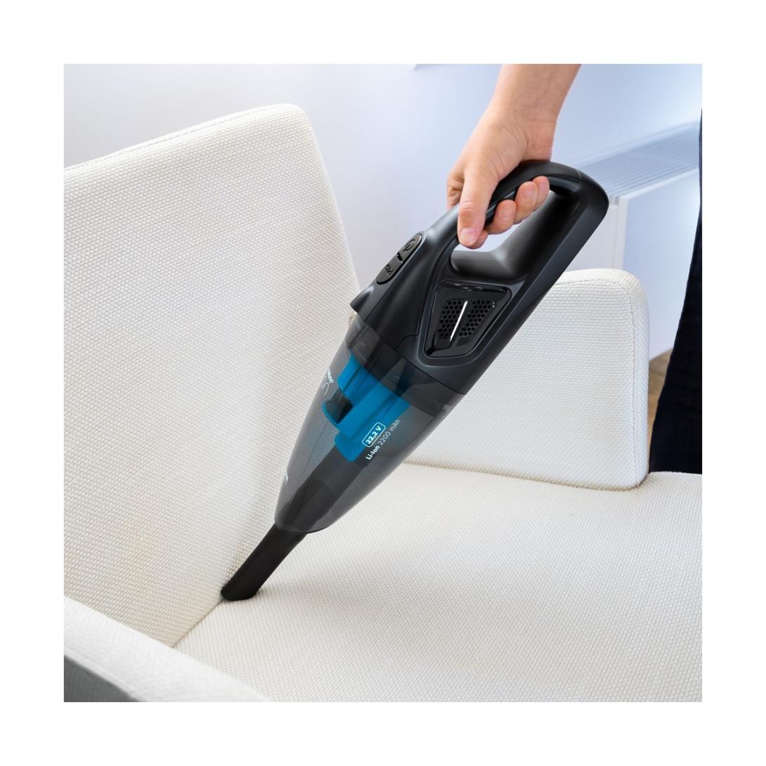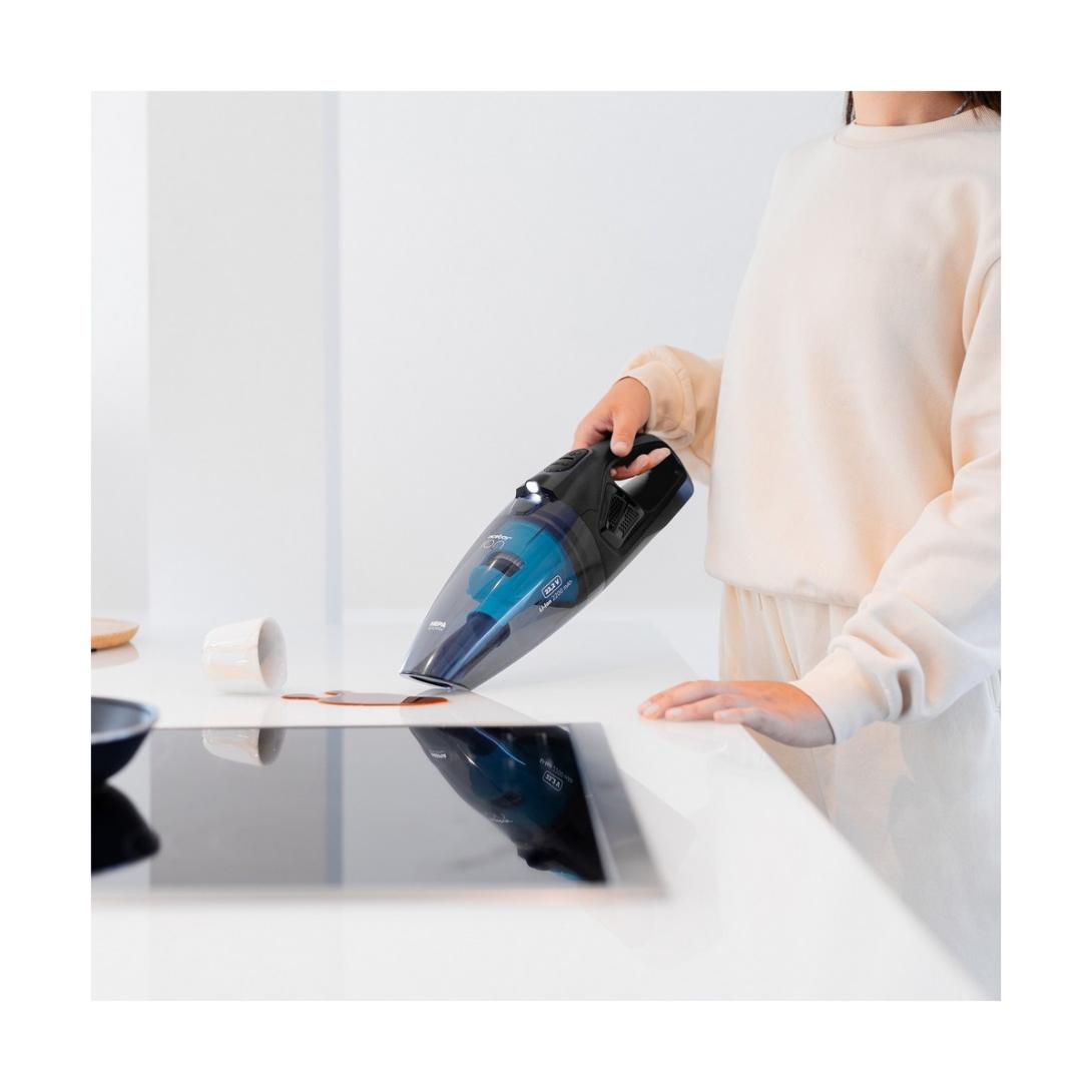 Ručný vysávač, Adaptér: 100-240 V, 50/60 Hz, Príkon: 150 W, 10 kPa, Kapacita Li-Ion batérie: 2200 mAh, Čas nabíjania: 4 hodiny, Čas používania: 25 minút