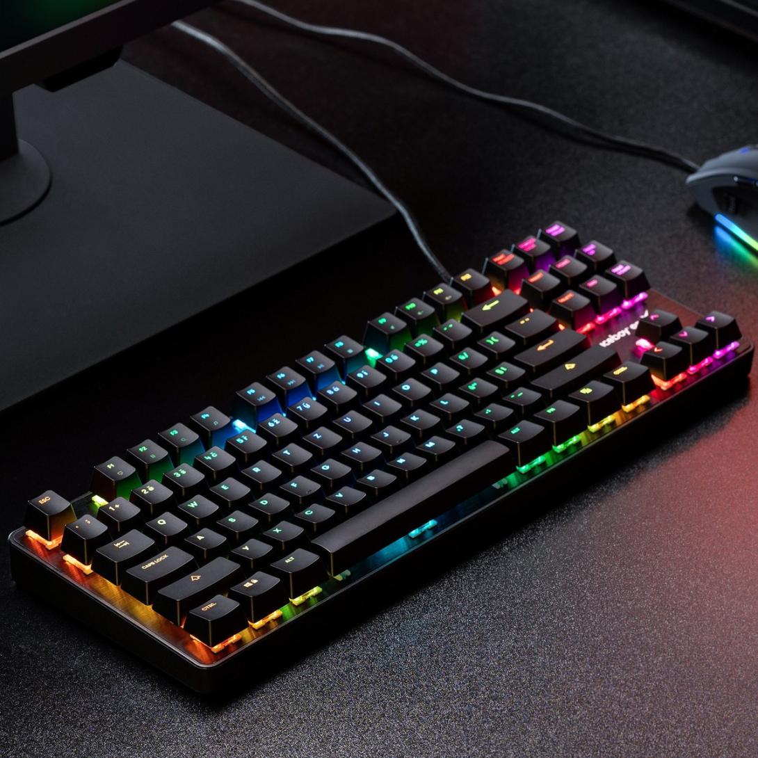 Mechanická klávesnica, Rozmery:355 × 125 × 38 mm, Počet klávesov:87, Životnosť spínačov:50 miliónov stlačení, Anti-ghosting:všetky klávesy (NKRO)