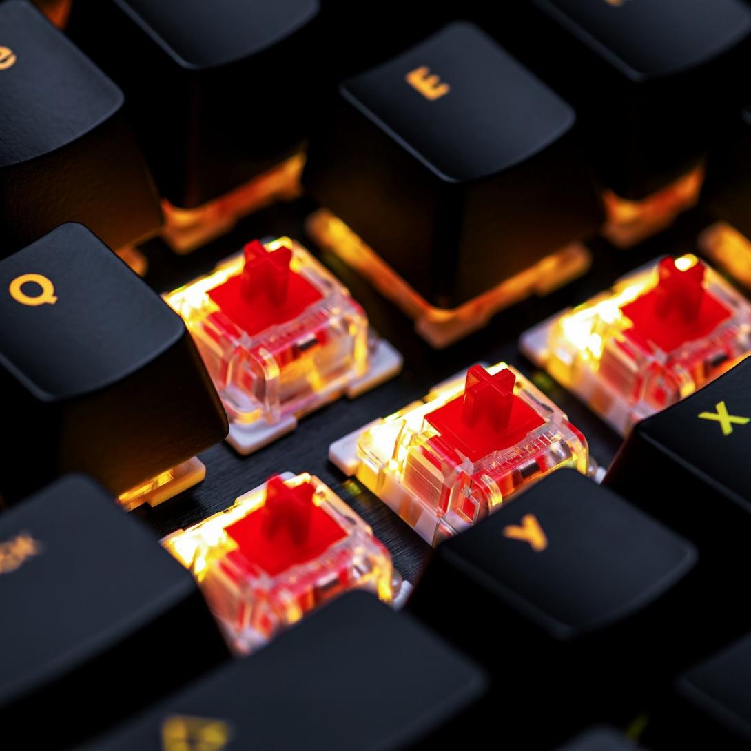 O rýchlu odozvu pri hre sa postarajú citlivé mechanické spínače OUTEMU Red. Odozva pri stlačení je výrazná, spínače sú spoľahlivé a odolné. Testy preukázali, že ani po 50 miliónoch stlačení nestrácajú nič zo svojej citlivosti.