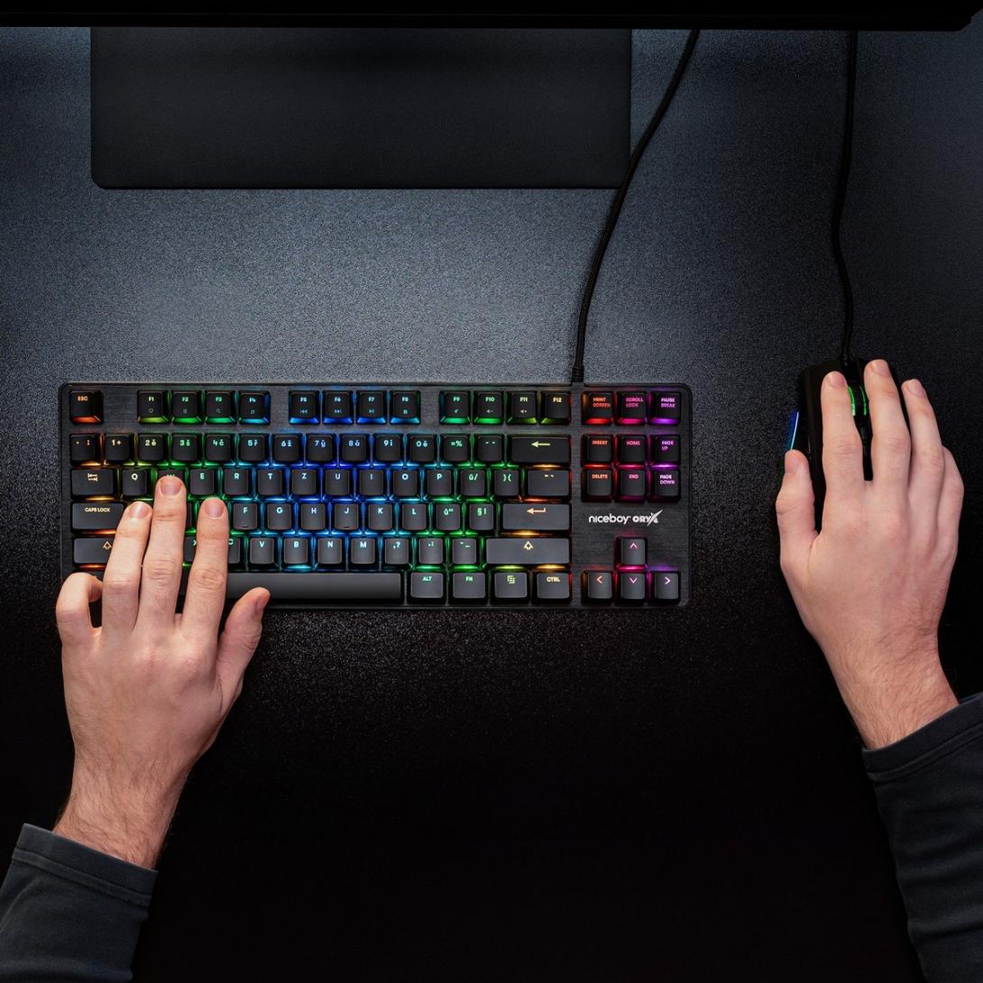 Niceboy K500X je navrhnutá v populárnom TKL (tenkeyless) dizajne. Neobsahuje numerický blok, takže ponecháva väčší priestor na efektívnejší pohyb myšou bez obmedzenia. Na tele klávesnice Niceboy K500X nájdete 87 najpoužívanejších klávesov s vysokým zdvihom.