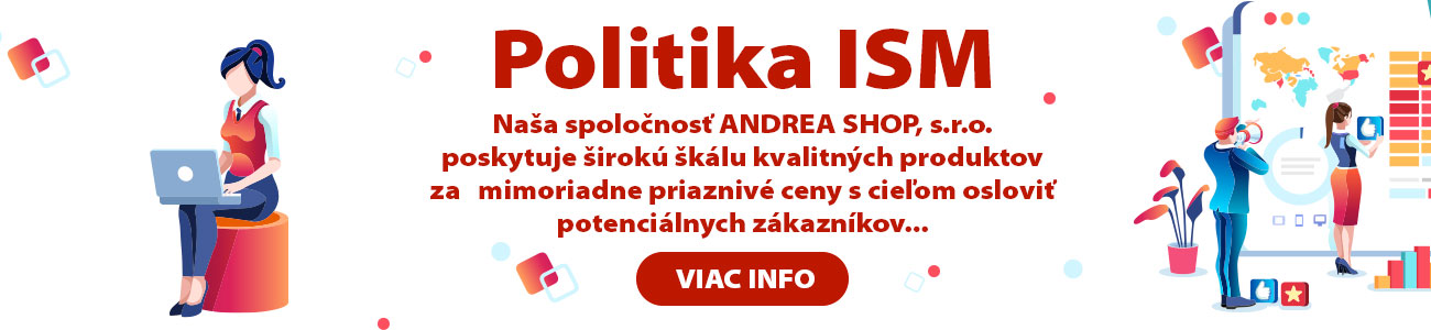 Tomu sa prispôsobuje aj celá obchodná stratégia. Keďže je ANDREA SHOP® slovenskou firmou, dôkladne pozná aj pomery na Slovensku. Snaží sa preto, aby boli produkty dostupné čo najširšiemu spektru zákazníkov. Preto sú ceny v mnohých prípadoch bezkonkurenčné aj napriek tomu, že sa jedná o špičkové výrobky významných značiek.
