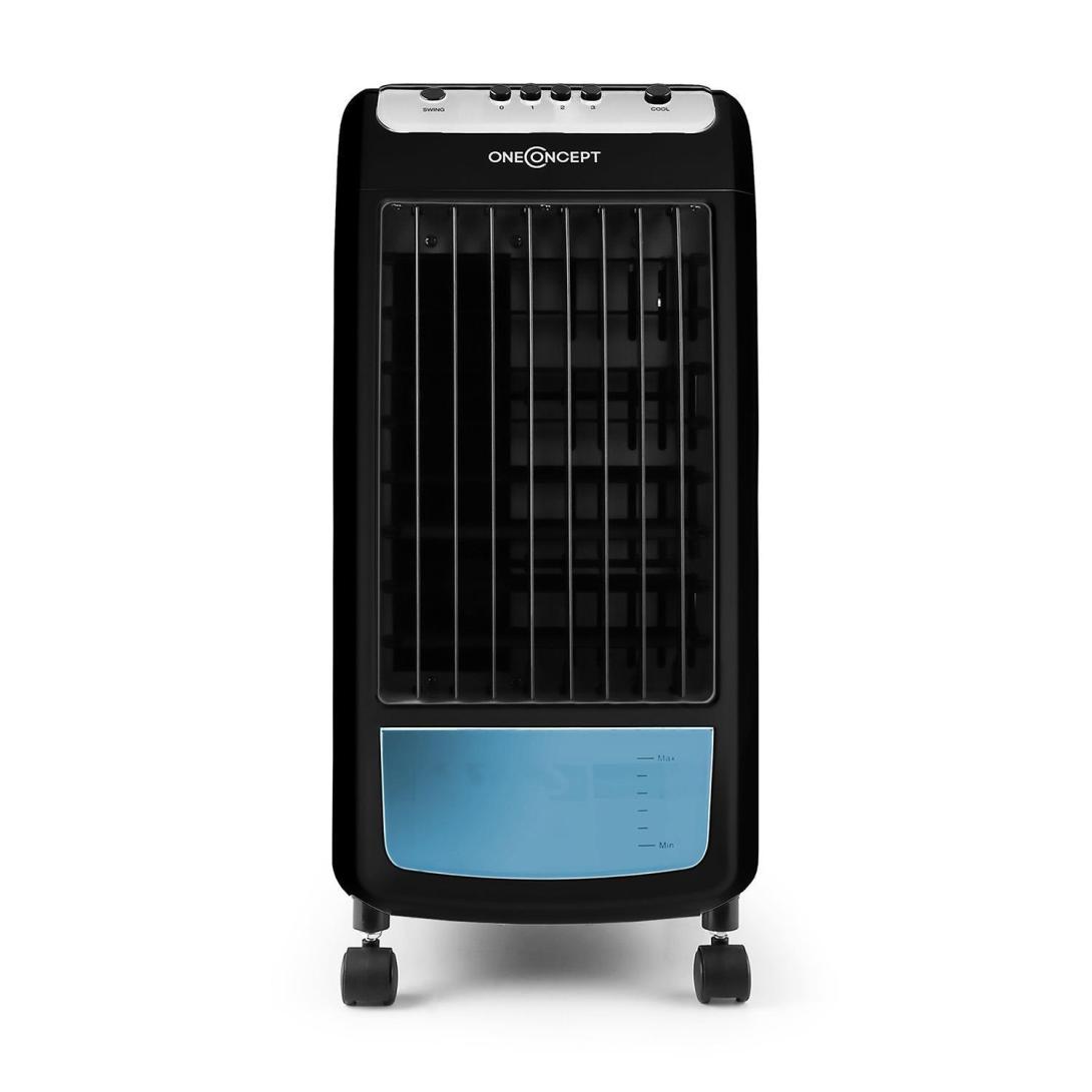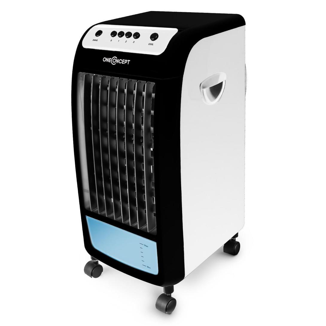 Chladič vzduchu CarribeanBlue od spoločnosti oneConcept zaboduje aj svojim dizajnom. Je to kompaktné zariadenie, ktoré sa hodí do mnohých priestorov, kde sa vrtuľové ventilátory nezmestia. Jeho konštrukcia je z pekného bieleho plastu s čiernym lemom hrán a dá sa ľahko vyčistiť s prachovkou alebo vlhkou utierkou.
