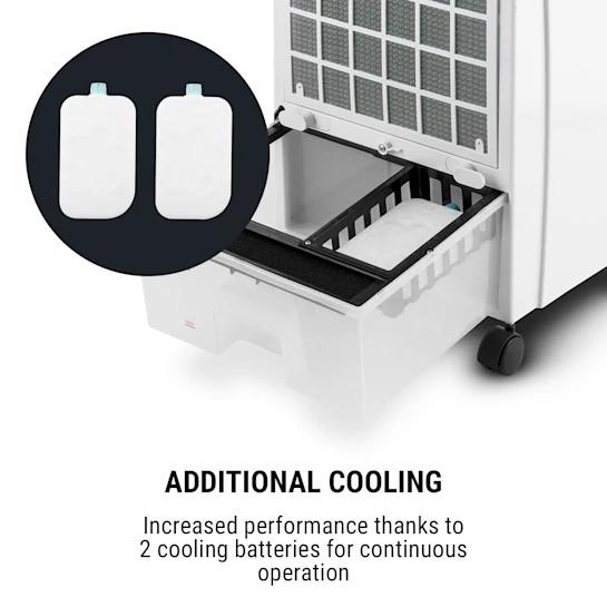 Zariadenie predstavuje šikovnú kombináciu ventilátora a klimatizácie, ktoré ochladzujú miestnosť chladným vzduchom. Vzduch sa ochladzuje odparovaním vody/ľadu z 8-litrového zásobníka. Okrem chladenia zariadenie obsahuje dodatočné ventilátory na zvlhčenie, čistenie a iónizovanie pre optimálne zlepšenie kvality vzduchu.