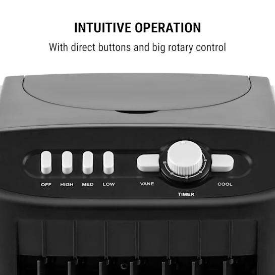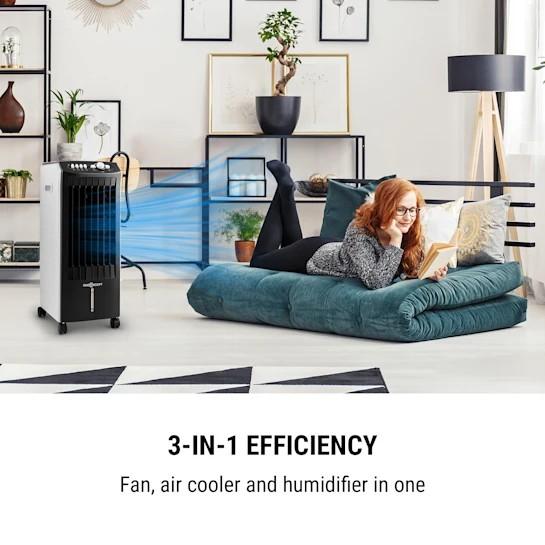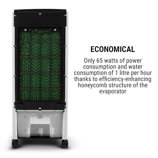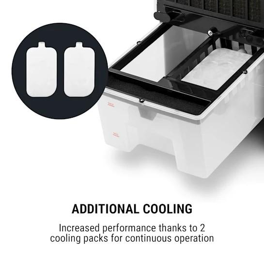 Zariadenie predstavuje šikovnú kombináciu ventilátora a klimatizácie, ktoré ochladzujú miestnosť chladným vzduchom. Vzduch sa ochladzuje odparovaním vody/ľadu z 8-litrového zásobníka. Okrem chladenia zariadenie obsahuje dodatočné ventilátory na zvlhčenie a čistenie pre optimálne zlepšenie kvality vzduchu.