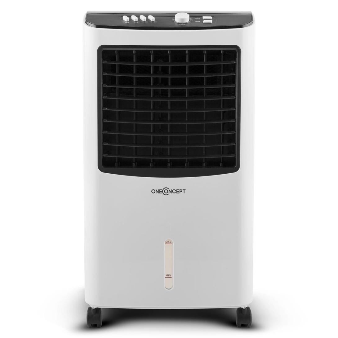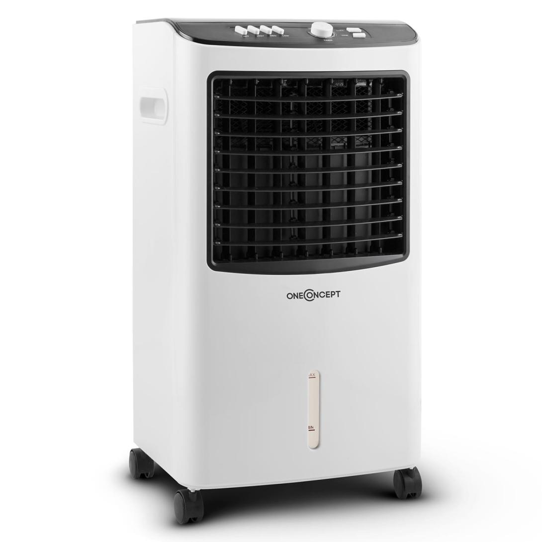 oneConcept MCH-2 je efektívny chladič vzduchu, ktorý zlepšuje klímu miestnosti lacno a elegantne. Jeho základnou funkciou je inteligentná kombinácia ventilátora a klimatizácie, ktorá prináša do miestnosti prúd studeného vzduchu. Chladenie fúkaného vzduchu sa dosahuje odparovaním vody/ľadu z 8-litrového zásobníka vody. Okrem chladenia vzduchu sa zariadenie Oneconcept MCH-2 odlišuje od tradičných ventilátorov tým, že vzduch zvlhčuje a čistí pre zlepšenie klímy v miestnosti.