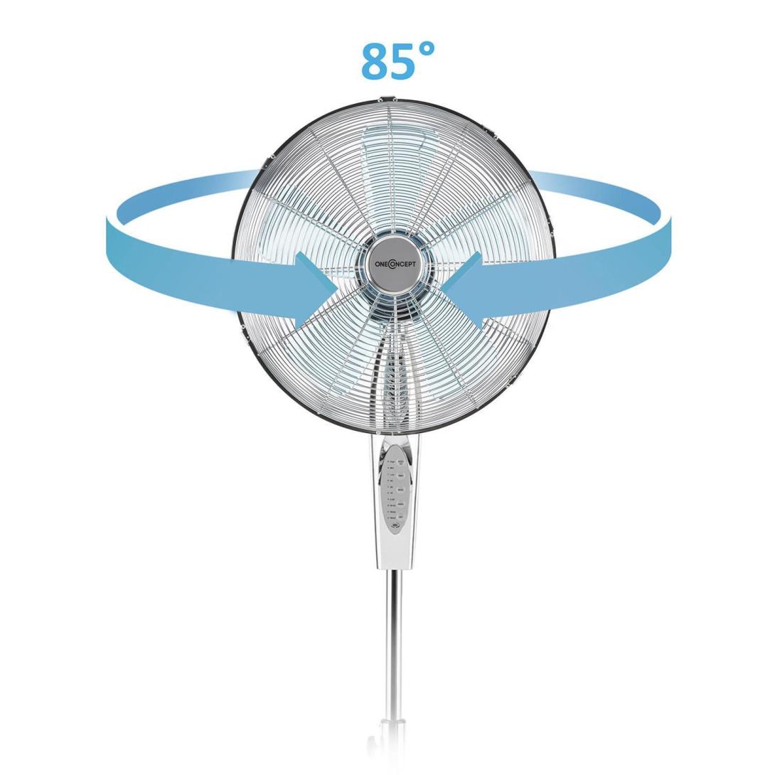 Pre splnenie vysokých nárokov oneConcept ešte zlepšil dizajn stojanového ventilátora Metal Blizzard a osvedčený model vybavil okrúhlym podstavcom, ktorý zaisťuje veľmi stabilné umiestnenie aj pri vysokých rýchlostiach fúkania. Dodávaný diaľkový ovládač umožňuje pohodlné ovládanie rýchlosti a funkcie otáčania. Okrem toho ponúka tento model funkciu časovača. V tejto prevádzke sa po uplynutí zvoleného času zariadenie vypne