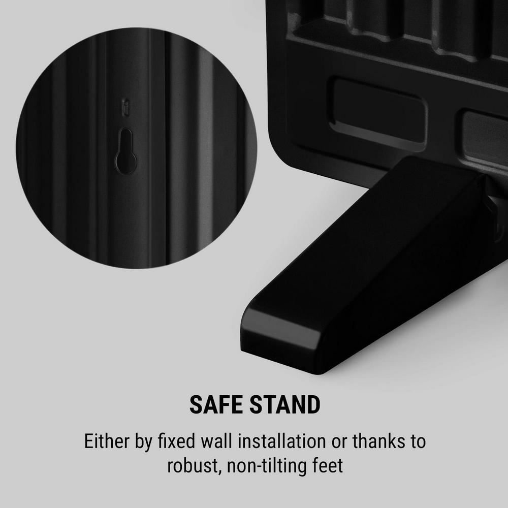 Vďaka funkcii Cleverheat Programming a týždennému časovaču zapínania a vypínania môžete pokojne oddychovať a venovať sa svojim povinnostiam, kým je olejový radiátor stále v prevádzke: V určenom čase sa spoľahlivo sám vypne. Stabilné používanie zabezpečujú dve bezpečné nožičky. Vďaka dodávanej montážnej zostave môže byť vyhrievacie teleso upevnené pohodlne a priestorovo úsporne na stenu.